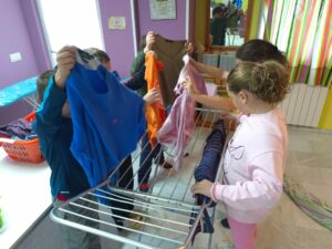 Aquí os mostramos que vuestr@s hijj@s son capaces de aprender, también estas tareas, así que os invitamos a que desde casa les sigáis enseñando para que se hagan responsables de aquellas que les corresponden por su edad.