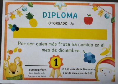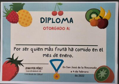 Para trabajar todos estos puntos, por ejemplo, en nuestro cole, hemos querido desarrollar hábitos como el consumo de fruta. Esto se trabaja de forma diaria en las clases, pues llevamos a cabo una actividad que es: EL FRUTÓMETRO. Al finalizar el mes, damos diplomas para aquellos que hayan traído más fruta. Asimismo, acompañando al frutómetro, en cada clase hay cartelería que refuerza el ejercicio de hábitos saludables, tales como: la pirámide alimenticia.