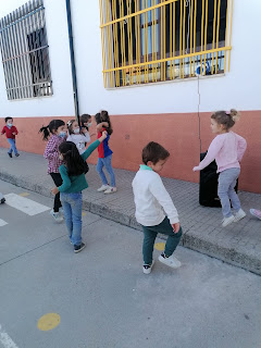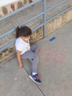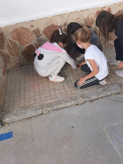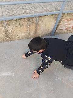 -Dibujos con tizas en el suelo en el segundo ciclo.