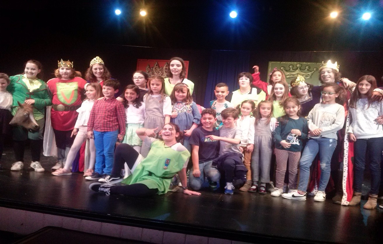 Y nos fuimos al teatro. Una tarde estupenda en familia. Más de 50 personas, niños y niñas con sus padres, madres, tías… Lo pasamos genial¡¡¡¡¡