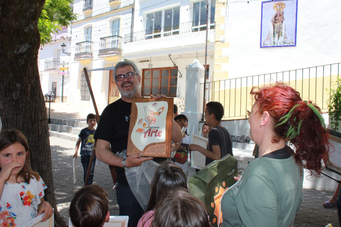 En el 2018 el Arte elegido fue LA PINTURA y nuestro artista local Antonio Benítez, que donó un óleo de nuestro tesoro del año El Calvario e impartió un curso de iniciación a la pintura donde el alumnado pintó un Herrerillo. Fue un auténtico placer llenar la alameda de nuestro pueblo de tanto Arte y pequeños artistas.