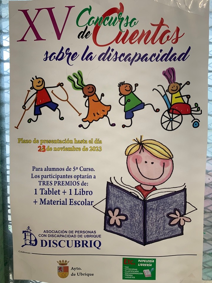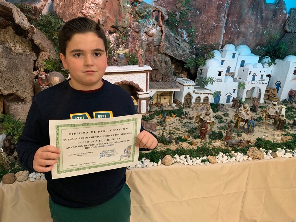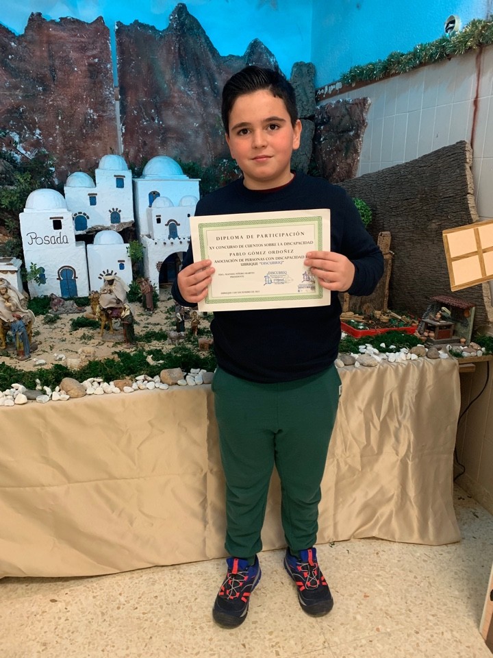 Nuestro alumno Pablo Gómez Ordóñez ha sido uno de los premiados en la XV edición del concurso de cuentos sobre la discapacidad organizado por la Asociación de personas con discapacidad de nuestra localidad “DISCUBRIQ”