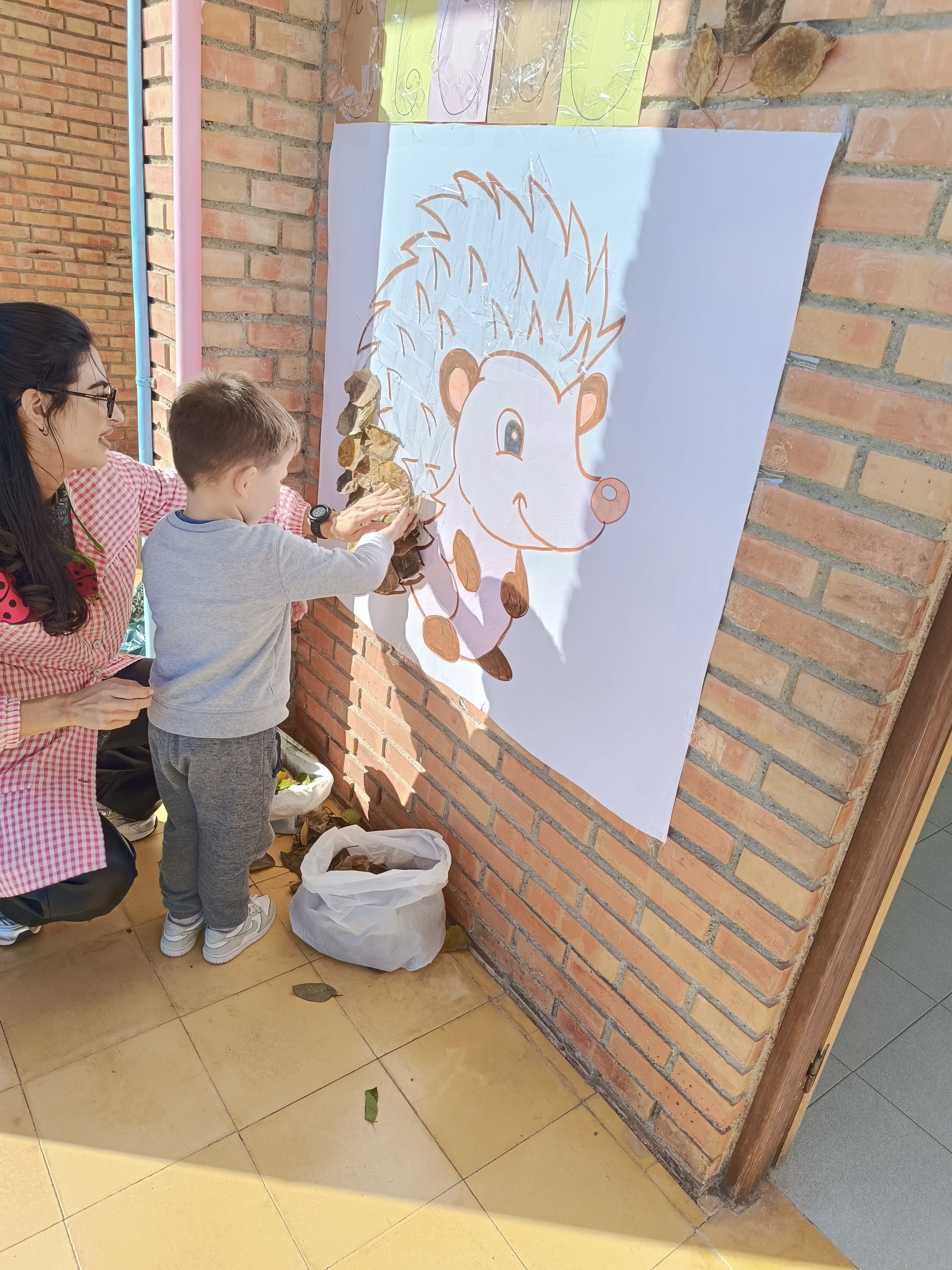 Hemos cantado, desayunado en el parque y jugado con nuestros compañeros, para terminar en clase con una manualidad con las hojas recogidas.