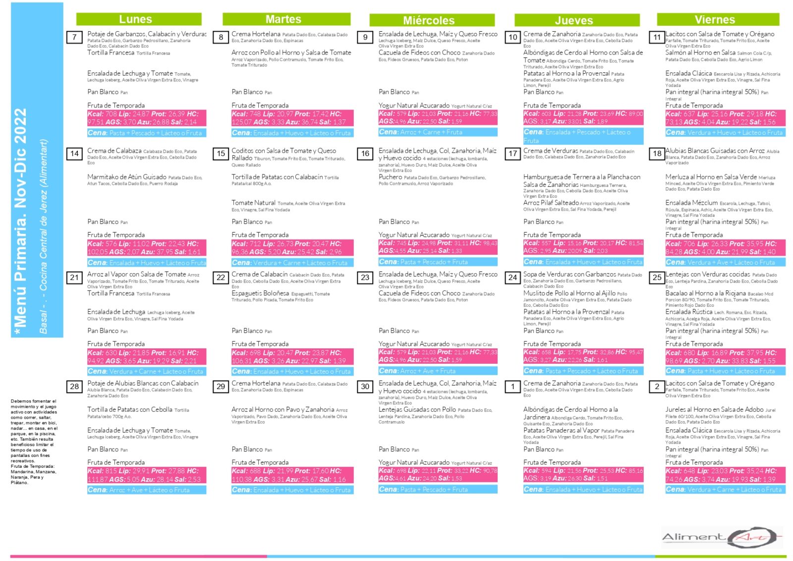 Menú Escolar del 7 de Noviembre al 2 de Diciembre