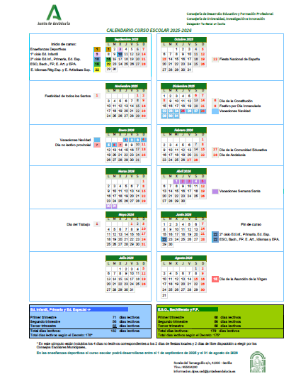 El calendario escolar lo tenéis cada curso disponible en IPASEN, en el apartado AGENDA.
