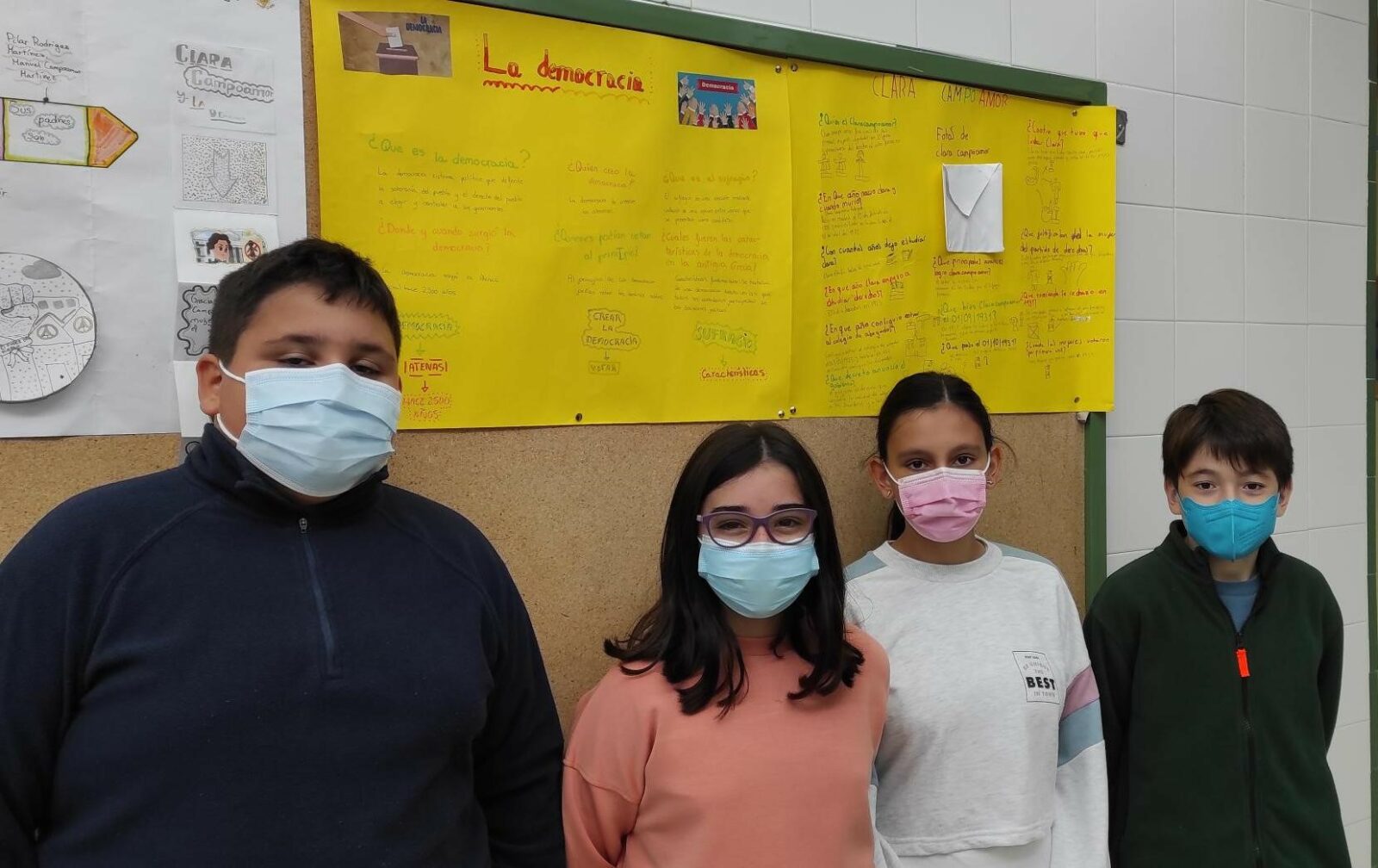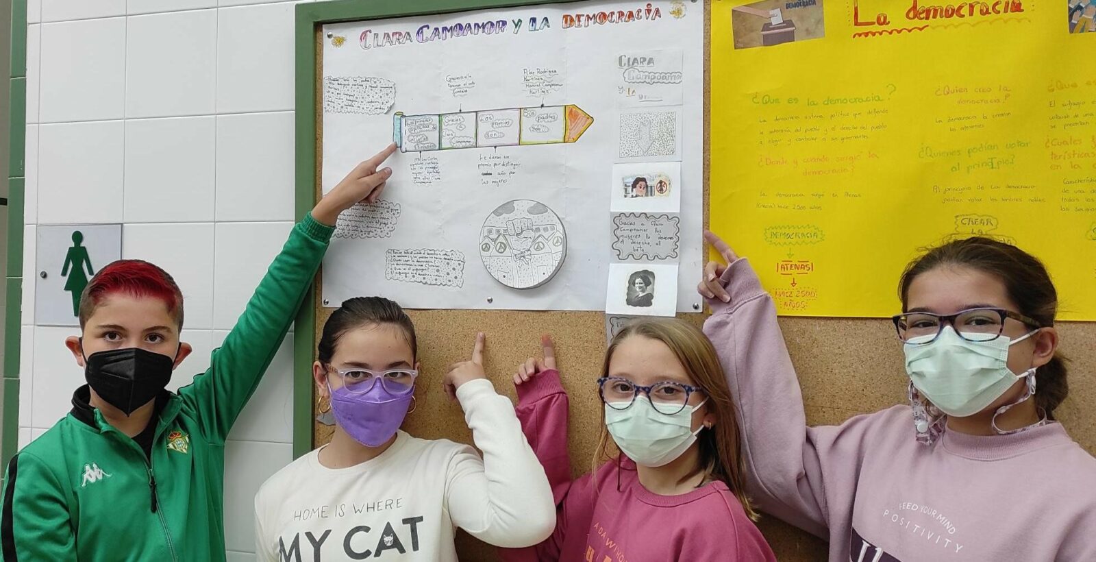 Nuestro alumnado de sexto curso ha realizado un trabajo de investigación en torno al concepto de democracia, historia de la democracia y centrándose especialmente en la labor de Clara Campoamor. Su trabajo, aparte de la labor investigadora, ha consistido en la elaboración de un “visual thinking” (expuestos en los tablones de nuestro centro) y una exposición oral adaptada a distintas edades, que han presentado al resto de compañeros/as del colegio; excepto educación infantil.