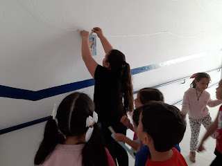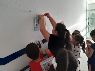 Los alumnos de 2º comienzan a formar el mural con las fotos de sus abuelas, madres, tía, madrinas
