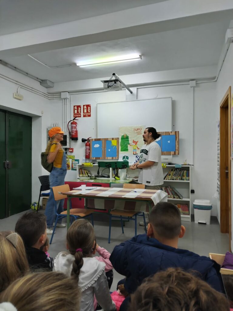 El viernes 10 de noviembre el alumnado de 1º y 2º de Educación Primaria tuvo el honor de presenciar en la biblioteca del colegio un teatro muy especial: “Fufú y el abrigo verde”.