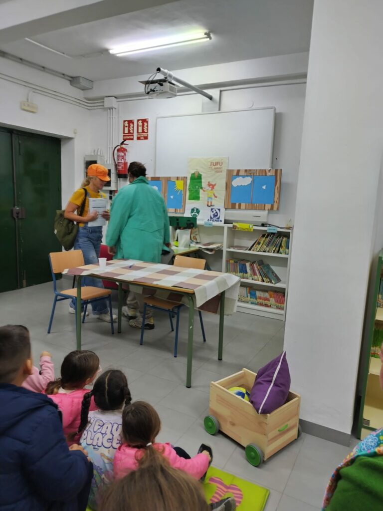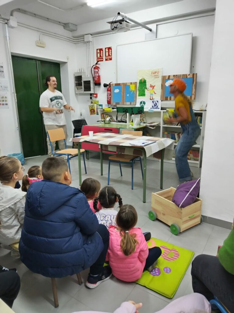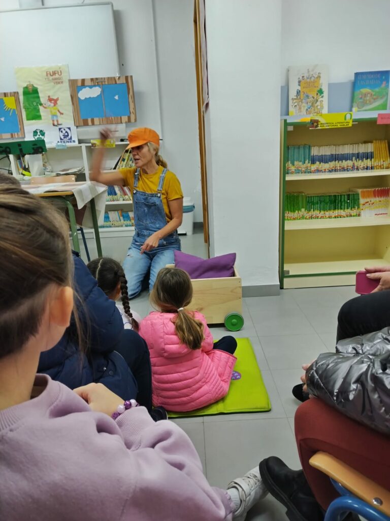 El viernes 10 de noviembre el alumnado de 1º y 2º de Educación Primaria tuvo el honor de presenciar en la biblioteca del colegio un teatro muy especial: “Fufú y el abrigo verde”.