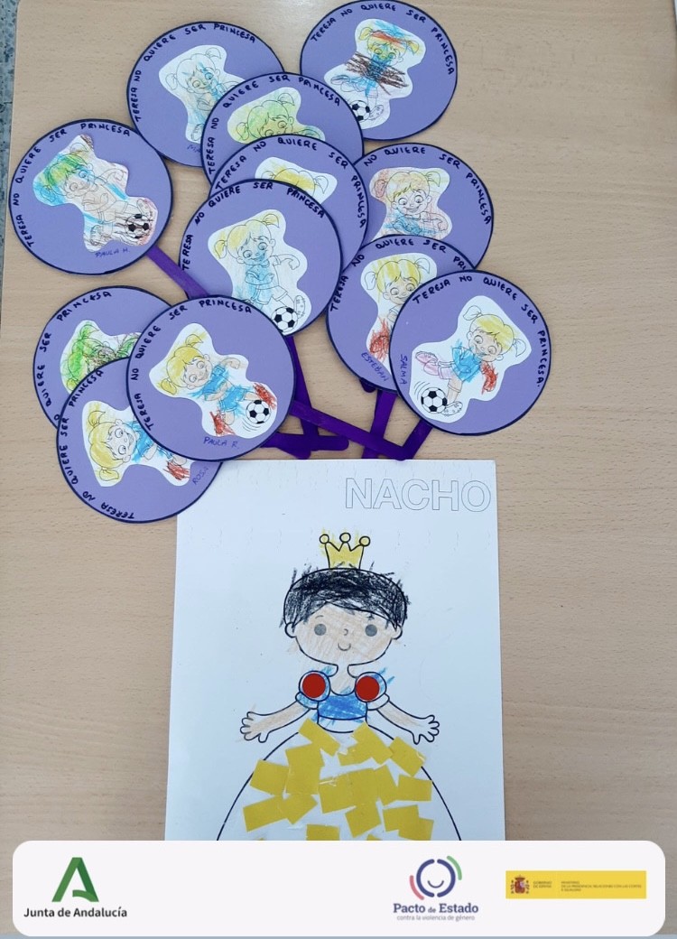 Teresa no quiere ser princesa (infantil y aula específica): dibujos de Teresa y Nacho.
