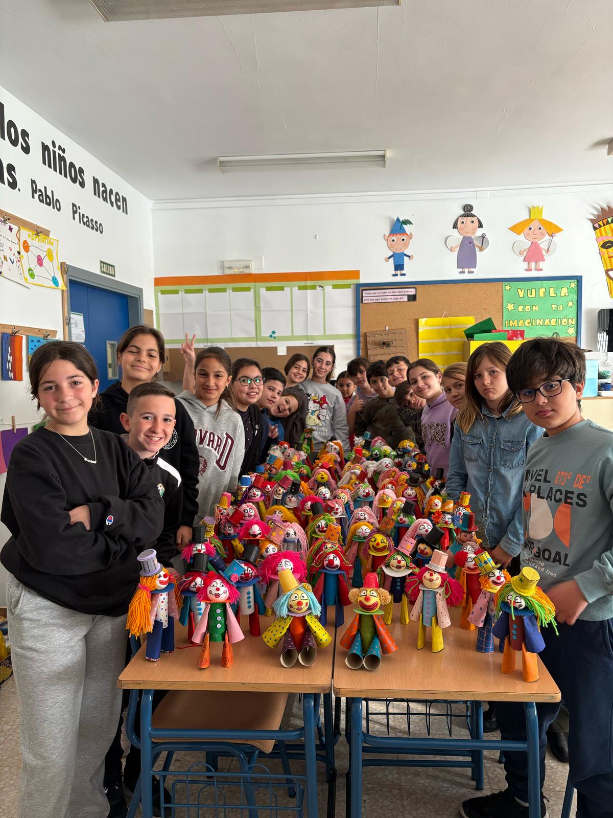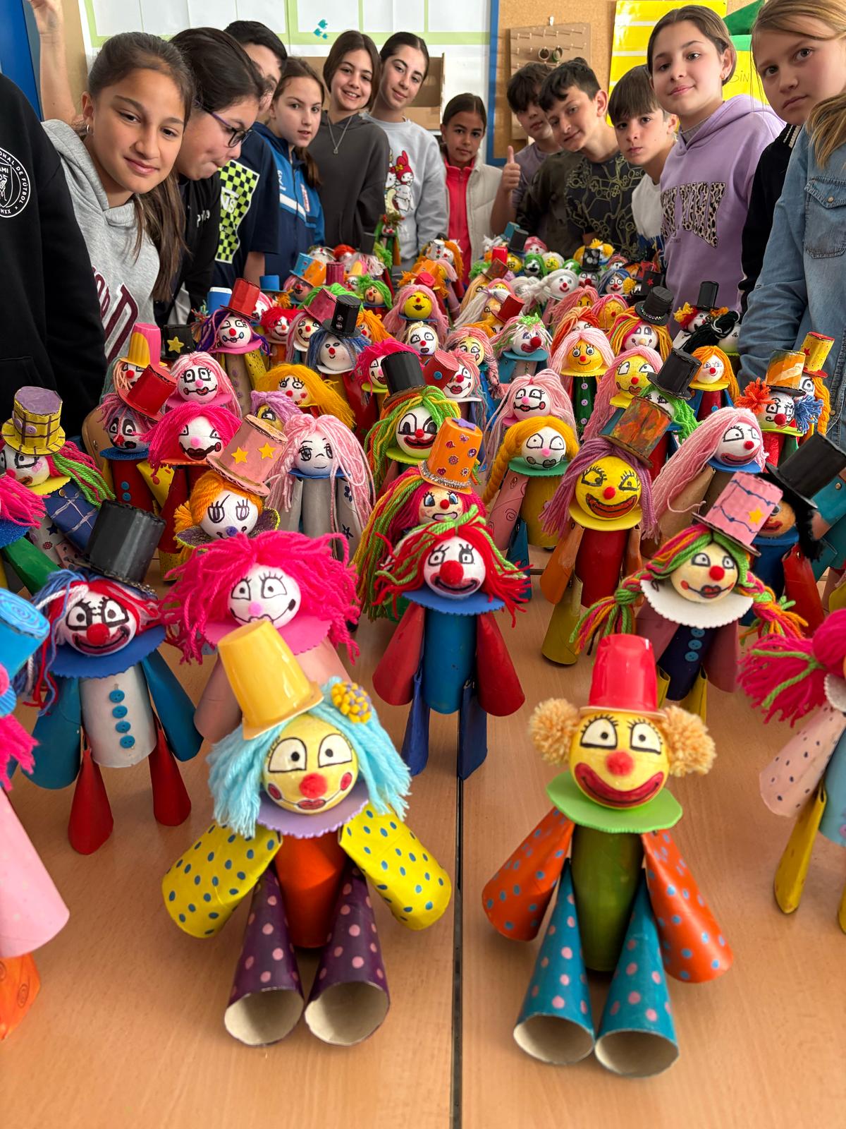 El alumnado de 5º y 6º de Primaria ha demostrado una vez más que el arte y la creatividad no tienen límites. Siguiendo nuestra cultura de respeto al medio ambiente, han creado divertidísimos payasos utilizando materiales reciclados como rollos de papel higiénico, cartón y tapones.