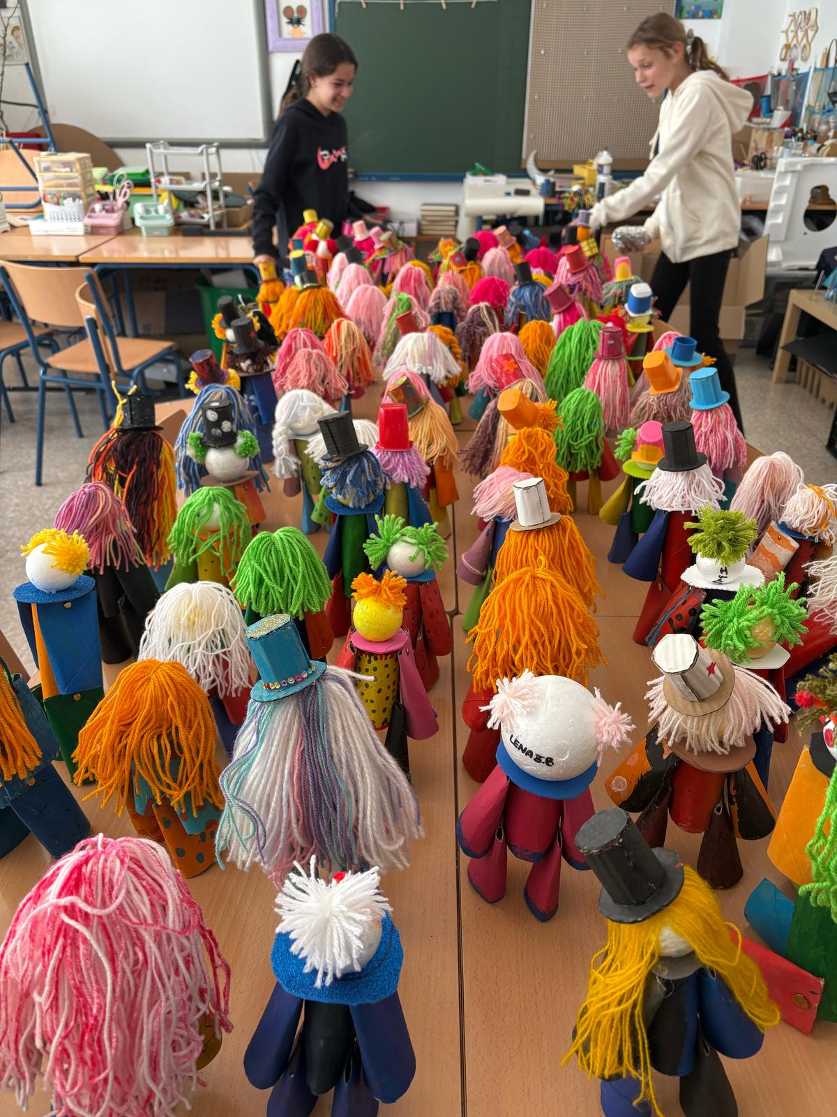A partir de un modelo base, cada niño y niña ha dado rienda suelta a su imaginación, dotando a su personaje de una personalidad única y original. El resultado ha sido una colorida y alegre exposición que llena de vida nuestras aulas y que demuestra que, con entusiasmo y materiales sencillos, se pueden lograr grandes cosas.