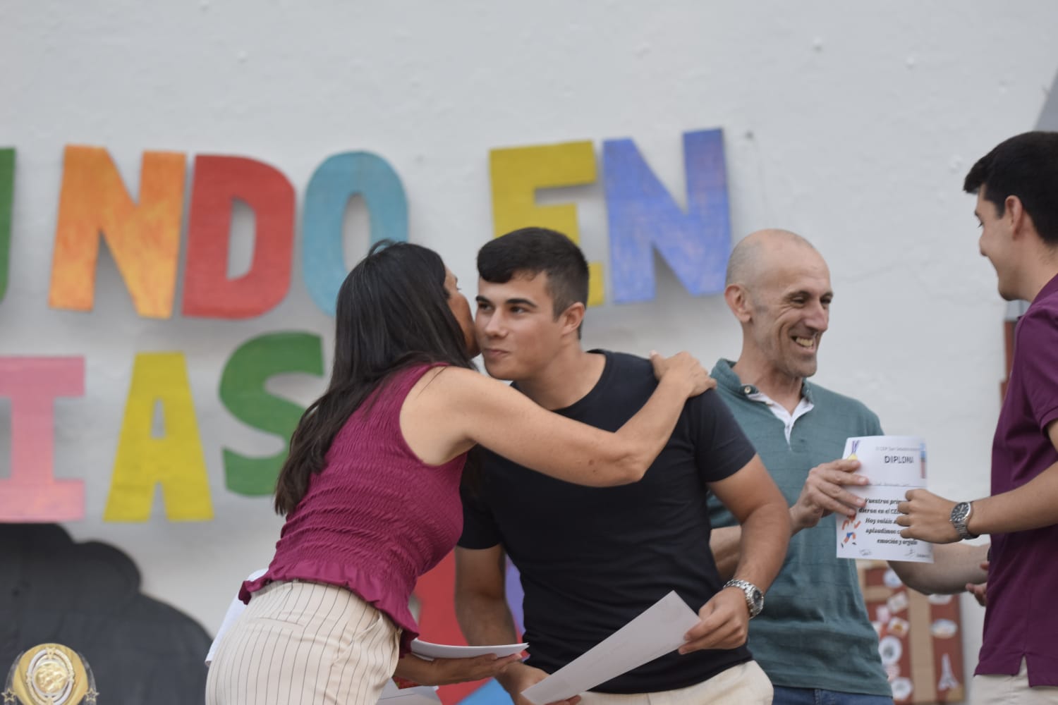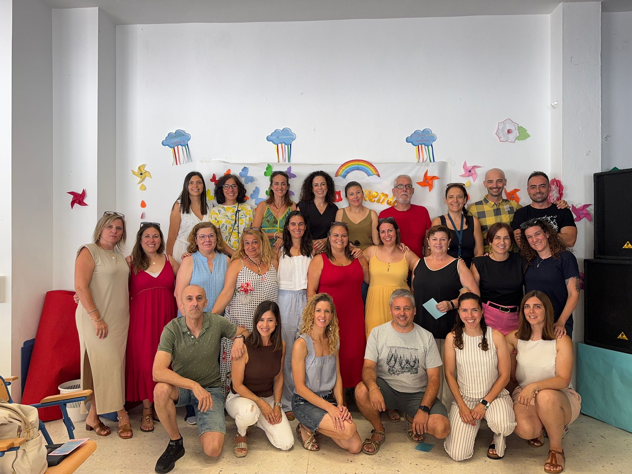 Alrededor de esta composición, los dibujos de los alumnos muestran, desde su óptica infantil, las cosas que les provocan felicidad: familia, amigos, juegos y sueños cobran vida a través de su arte. De este modo, el mural se convierte en un espacio de encuentro y participación de toda la comunidad, recordándonos la importancia de buscar y valorar cada pequeña chispa de felicidad que se cruza en nuestro camino.