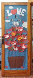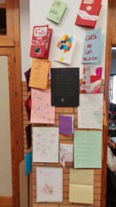 Actividades: Exposición de tarjetas en las puertas de cada clase con poesías dedicadas a alguien. En Infantil – Móviles de corazones. Película «Sing».