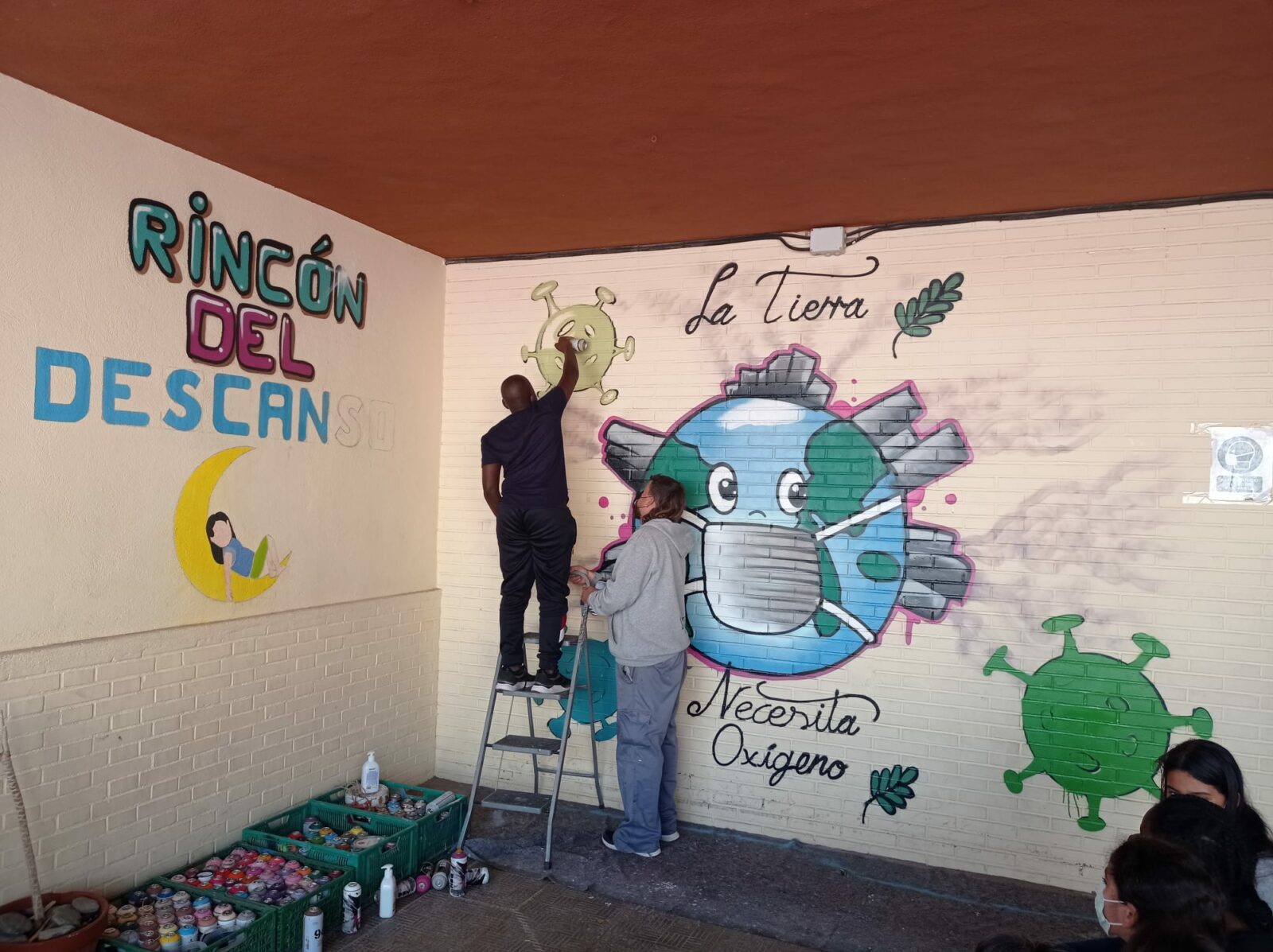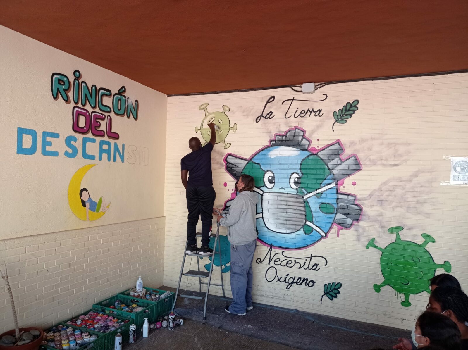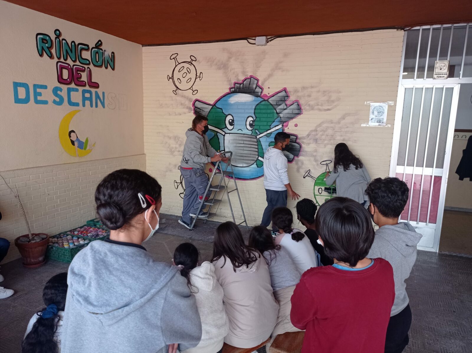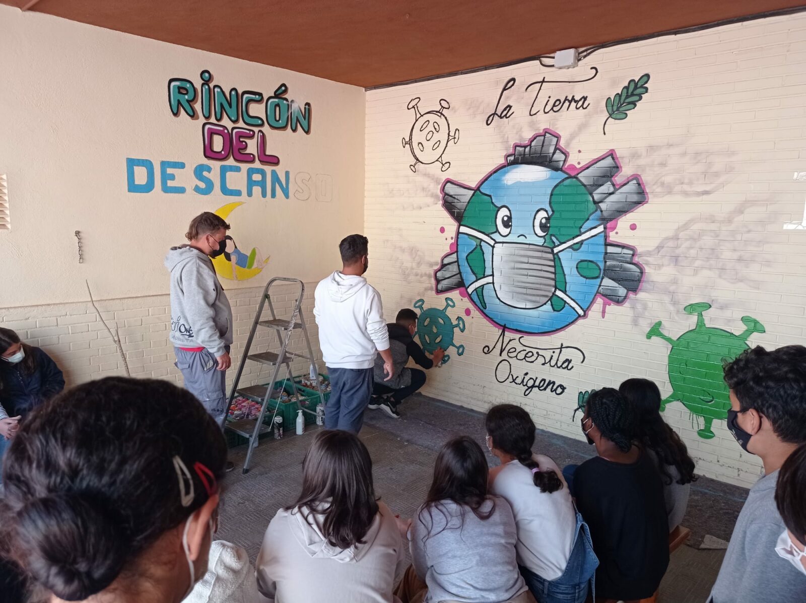 Hoy los alumnos de tercer ciclo han tenido la posibilidad de acercarse un poco más al mundo del hip-hop, más concretamente al arte del graffiti a través de dos artistas muy reconocidos de Almeria, Nanui69 y Dank. Los alumnos además tuvieron la ocasión de pintar entre todos un mural con objeto de la lucha contra el cambio climático y el cuidado del medio ambiente. Este boceto lo realiza la alumna Yasmin de 5º de primaria.