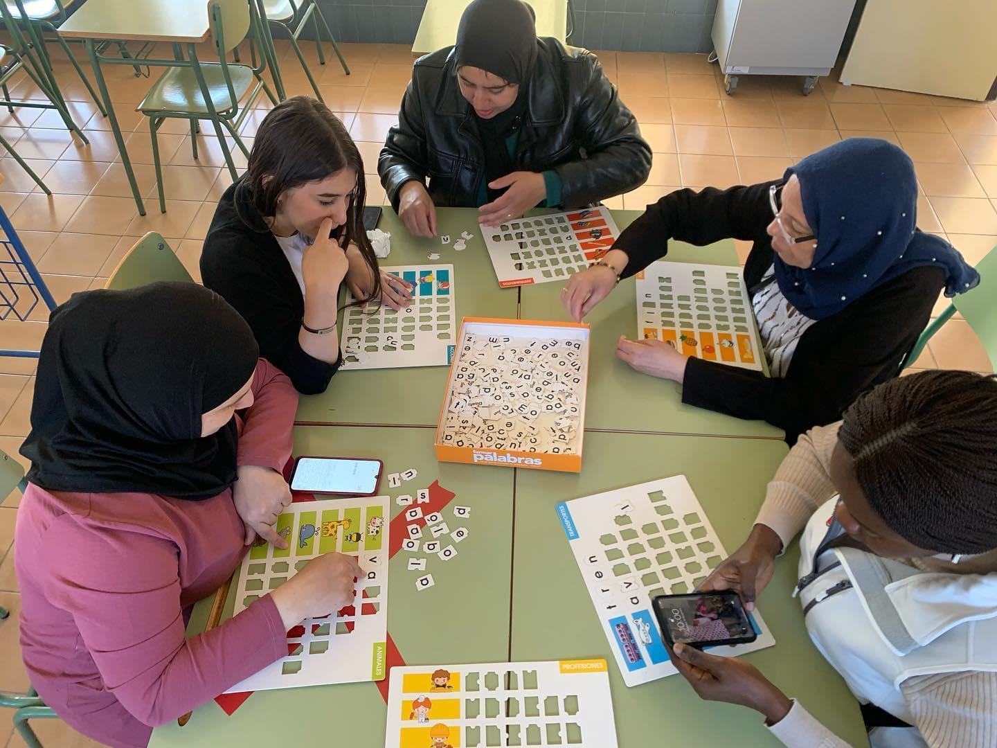Alumnado del grupo INTER básico aprendiendo a deletrear mediante el JUEGO COOPERATIVO.