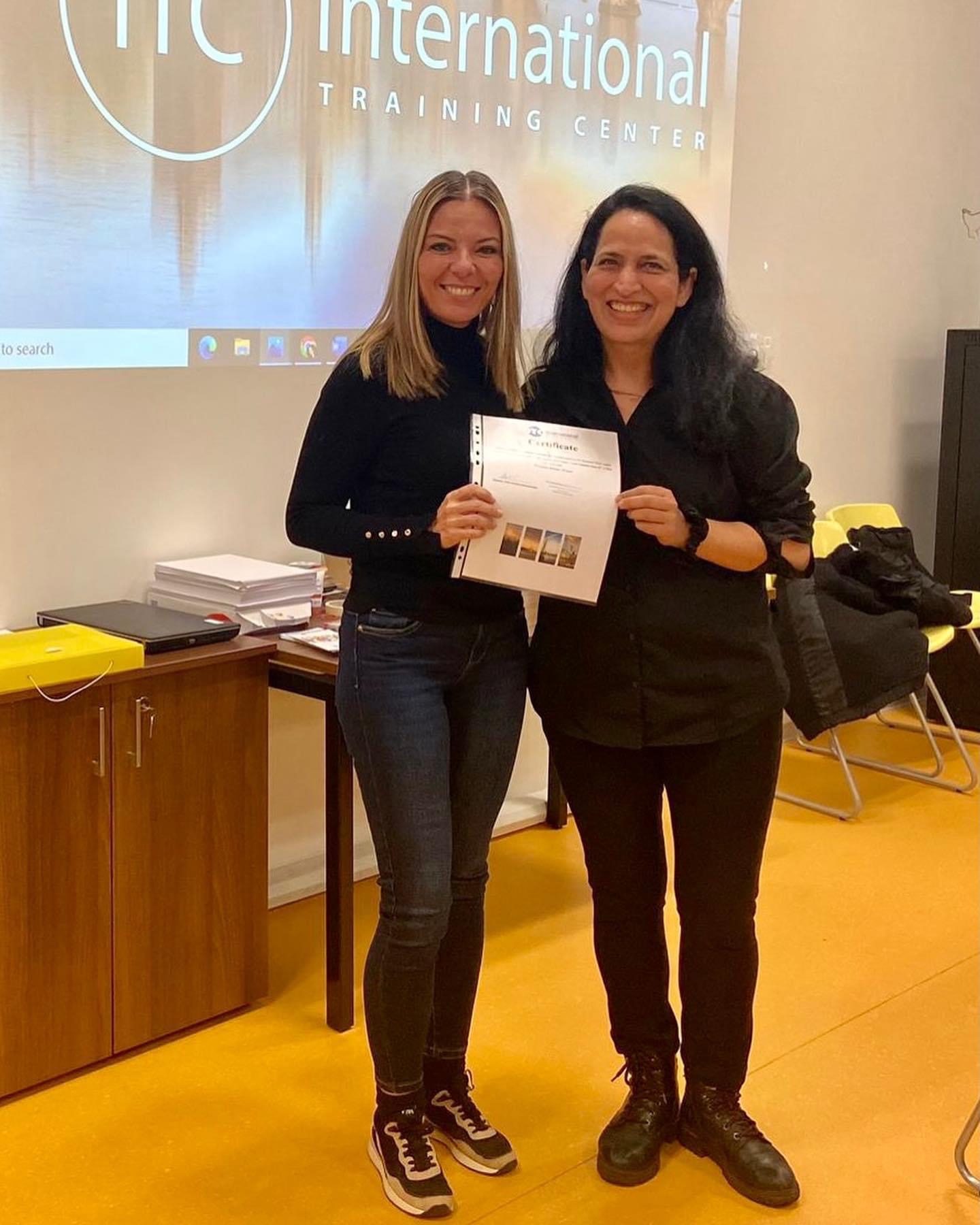 La formación tuvo lugar ITC International Training Center, en Praga, donde asistirán al curso Going Digital in a Innovative Classroom, un curso impartido en inglés y diseñado para mejorar la calidad y la eficacia del proceso educativo en cualquier aula. Fomentar el pensamiento crítico y creativo, las habilidades para la resolución de problemas y la toma de decisiones, la integración de alumnos de minorías mientras se juega en el aula o el uso de las TIC como herramienta para desarrollar las habilidades del siglo XXI son ejemplos de los módulos del curso que ampliarán su potencial docente y motivarán a sus alumnos.La directora del centro formativo les hizo entrega de la acreditación por haber cumplido con creces los requisitos exigidos en el programa.Además de disfrutar de una magnífica experiencia, se traen los bolsillos llenos de buenas prácticas docentes que nos ayudarán, sin duda, a seguir avanzando hacia el futuro.