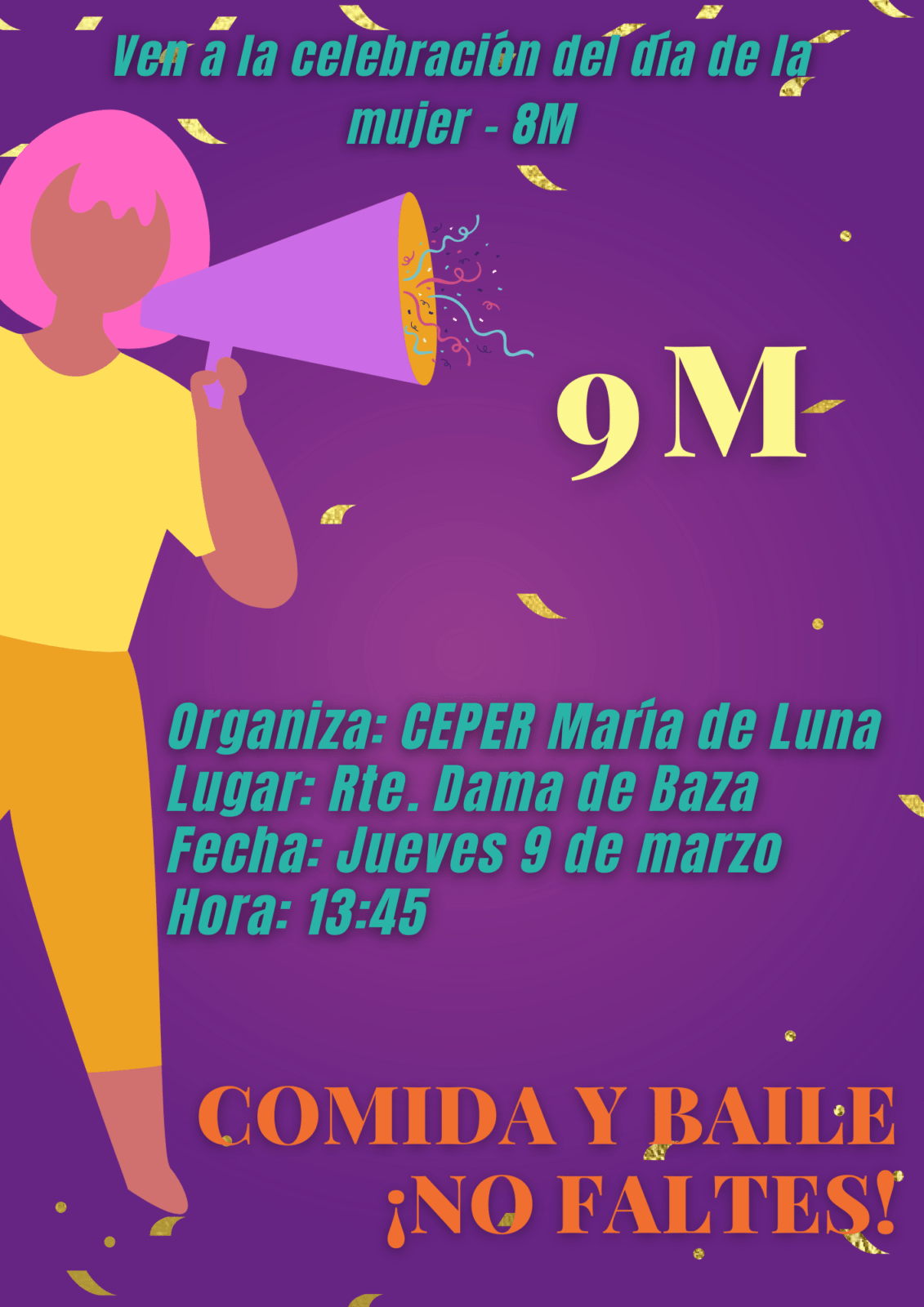 Todos los años, en el CEPER María de Luna nos gusta conmemorar el 8M, día Internacional de la Mujer Trabajadora, con acto festivo en el que pueda participar todo nuestro alumnado.
