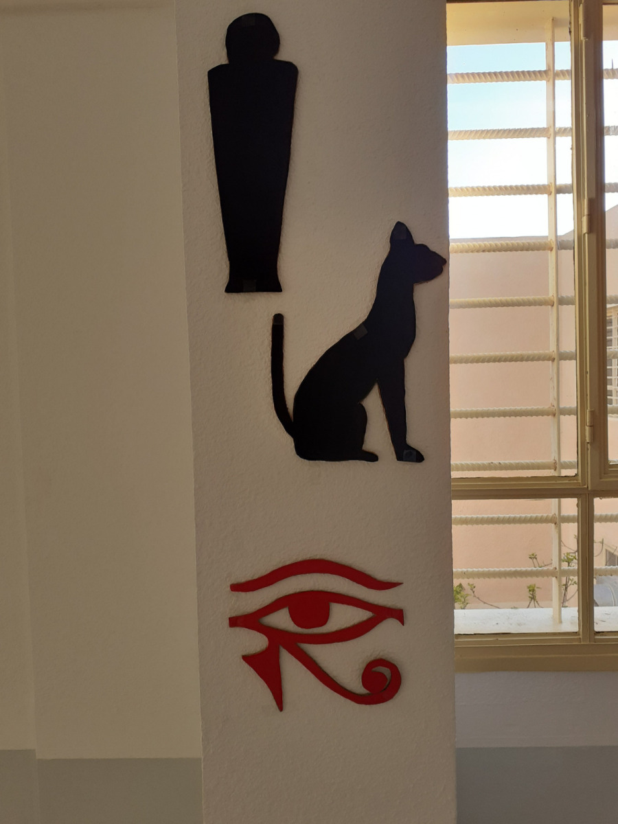 El Módulo 8, que es donde están recluidos los presos interesados en una formación académica y que, por ende, es el educativo y de respeto, comenzó el segundo trimestre escolar con el estudio del maravilloso y fascinante mundo del antiguo Egipto. Así, como proyecto final, los alumnos hicieron una serie de manualidades que luego se han expuesto en el centro penitenciario. Entre estos trabajos destacan el gran obelisco egipcio de tres metros de altura construido con cartón y murales con el sistema numérico y los dioses más importantes. También una pequeña réplica de las tres pirámides de Giza. Es por ello que, como iniciativa del CEPER Retamar, la conferencia ‘Dos hombres y un destino: a la búsqueda de Tutankamón’ se celebró como colofón de fin de trimestre.