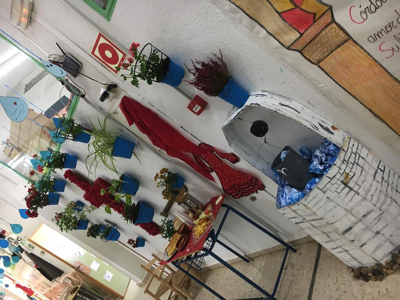 En el primer tramo; eran los más mayores los que vivenciaban los Juegos Populares en el patio, amenizados con música popular de Andalucía, ( la palma, el lacito, la rayuela, zapatilla al centro, el elástico, la comba, el pañuelo, baile de sevillanas, … ). Mientras tanto, los pequeños del cole, disfrutaban del Paseo por Andalucía, en el que realizaron una ruta guiada por los distintos pasillos del centro, que habían sido decorados con trabajos, manualidades, dibujos,… diversas exposiciones alusivas a las distintas provincias de Andalucía. Todo un proyecto, coordinado por todos los ciclos; tutores y especialistas, con la inmensa colaboración de alumnado, familias y personal del centro, que se han prestado en los días previos, para que el resultado fuera inmejorable.