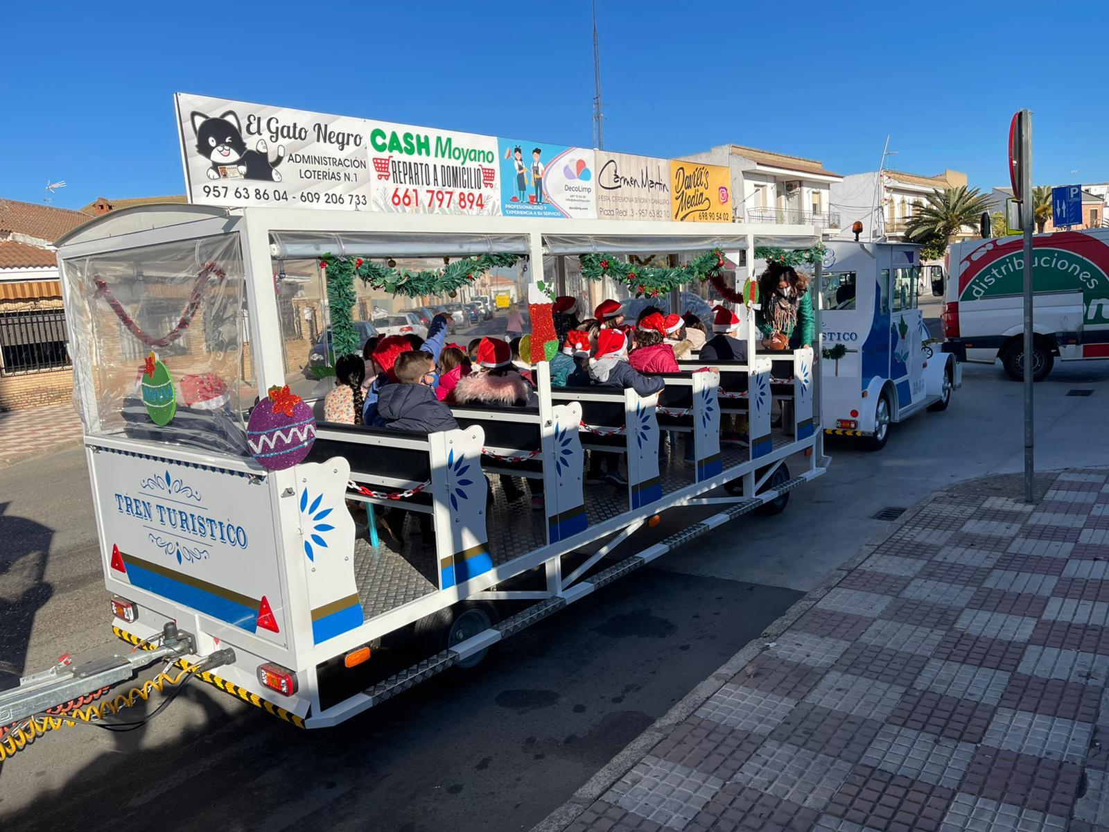 Entre las diversas actividades realizadas en nuestro colegio con motivo de la navidad, el alumnado de primero, segundo y tercero han podido dar un paseo en el Tren de la Alegría por las distintas calles de la localidad. Para el resto del Colegio se les ha hecho entrega de una invitación al mismo por parte de nuestro Ayuntamiento para que puedan montarse en otro momento en horario extraescolar. ¡¡¡Se lo han pasado Genial!!!