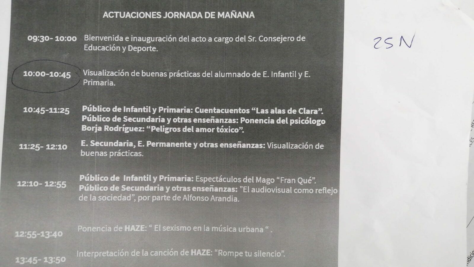También se participó en las jornadas de igualdad, que tuvo lugar el día 25 tendrá dentro del II Encuentro de Aulas Violetas, con motivo del Día Internacional contra la Violencia de Género. Nuestro centro participó en la exposición de buenas prácticas docentes con un vídeo de cuenta-cuentos del libro viajero del año pasado que adaptaba los cuentos tradicionales a la visión actual igualitaria de la mujer.