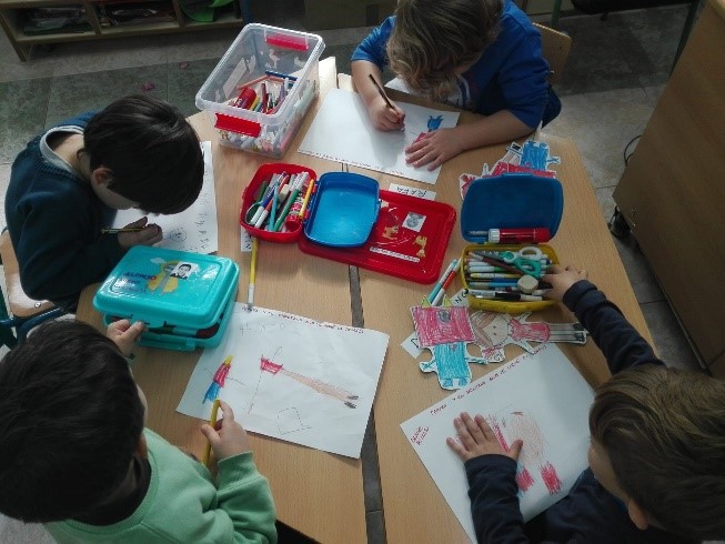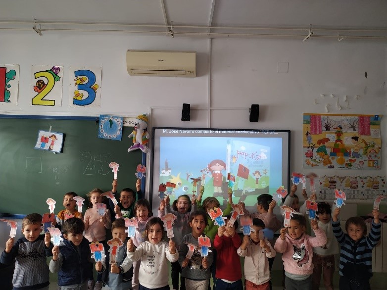En Infantil y primer ciclo de Primaria se trabajó en torno al libro “Pepuka y el monstruo que se llevó su sonrisa”, con asambleas, lectura del cuento, presentación de las marionetas del cuento, debates y realización de fichas y vídeos, comentando sus emociones respecto al cuento.
