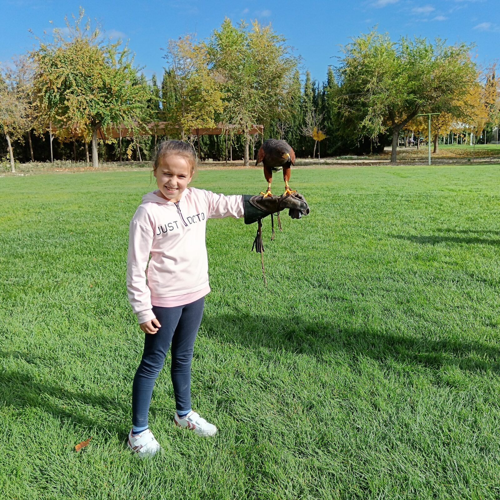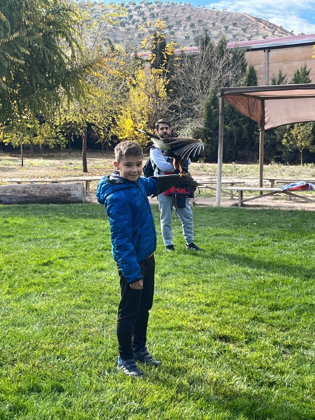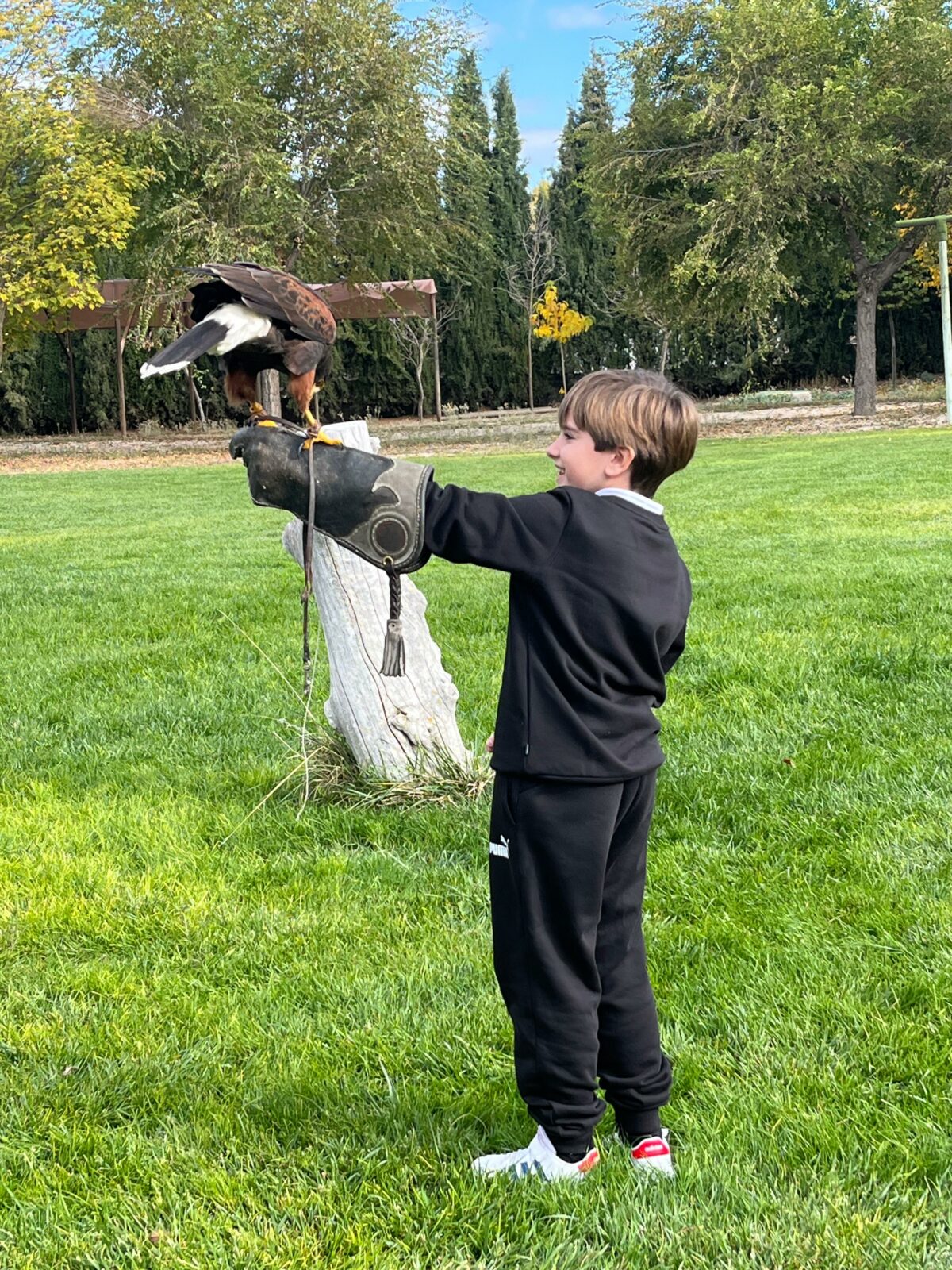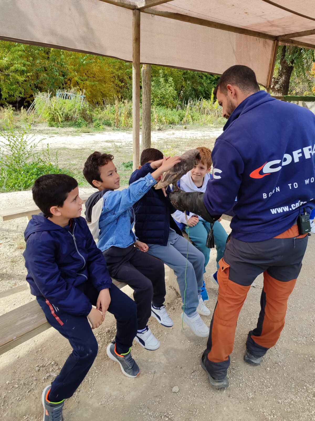 Además, participaron en un taller de creación de lanzas con puntas de sílex, así como un taller de cetrería con aves rapaces, en el que quedamos impresionados/ as con las habilidades de estos animales, incluso tuvieron la oportunidad de alimentar y coger a un águila. Vieron las jaulas de animales de la granja escuela, acercándose a una impresionante avestruz, acariciando al burro Jerónimo y jugando con los conejos que criaban.