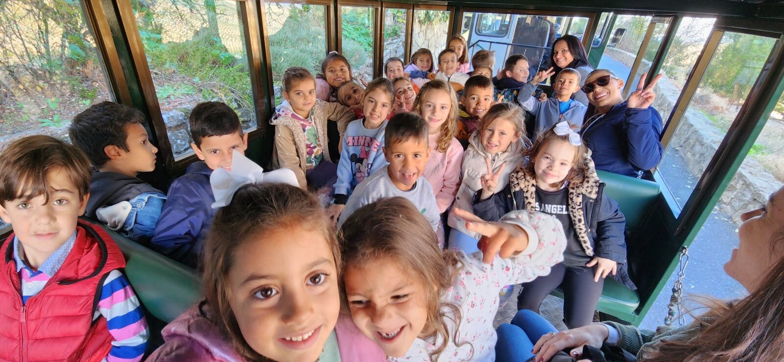 El día 12 de noviembre todo el alumnado del centro visitó la Granja Escuela «El Castillo» de Píñar. Allí, se llevaron a cabo distintos talleres en los que los niños y niñas de nuestro centro aprendieron más sobre la vida de los hombres prehistóricos gracias a la visita a las cuevas de Píñar, donde se encuentran réplicas de restos que se encontraron allí: herramientas de cocina, de caza, restos óseos, así como sus costumbres. El transporte a las cuevas se hizo en tren turístico, en el que el alumnado disfrutó a su vez de una visita por las calles de la localidad.
