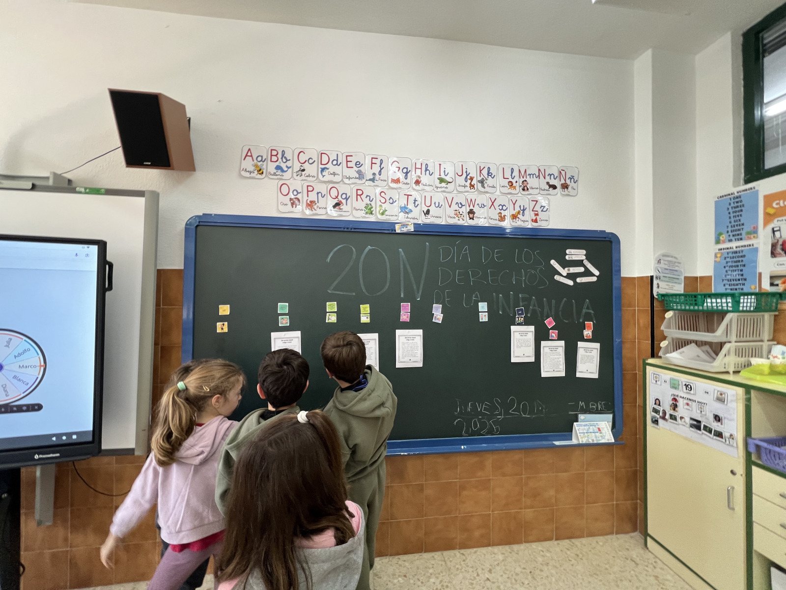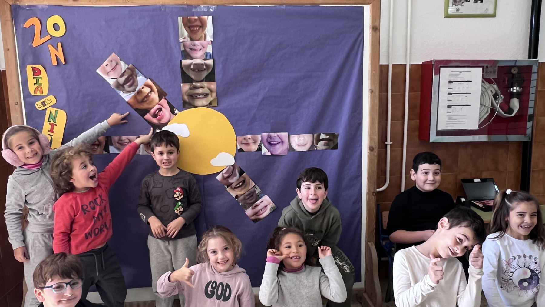 Como actividad especial del jueves 20 de noviembre, llevamos a cabo una dinámica colaborativa para simbolizar esta celebración: entre todos y todas fuimos completando los rayos de un gran sol con las sonrisas del alumnado. Cada sonrisa representaba un derecho, un deseo o un gesto que contribuye a hacer de nuestro colegio un lugar donde reine la alegría, el respeto y la convivencia.