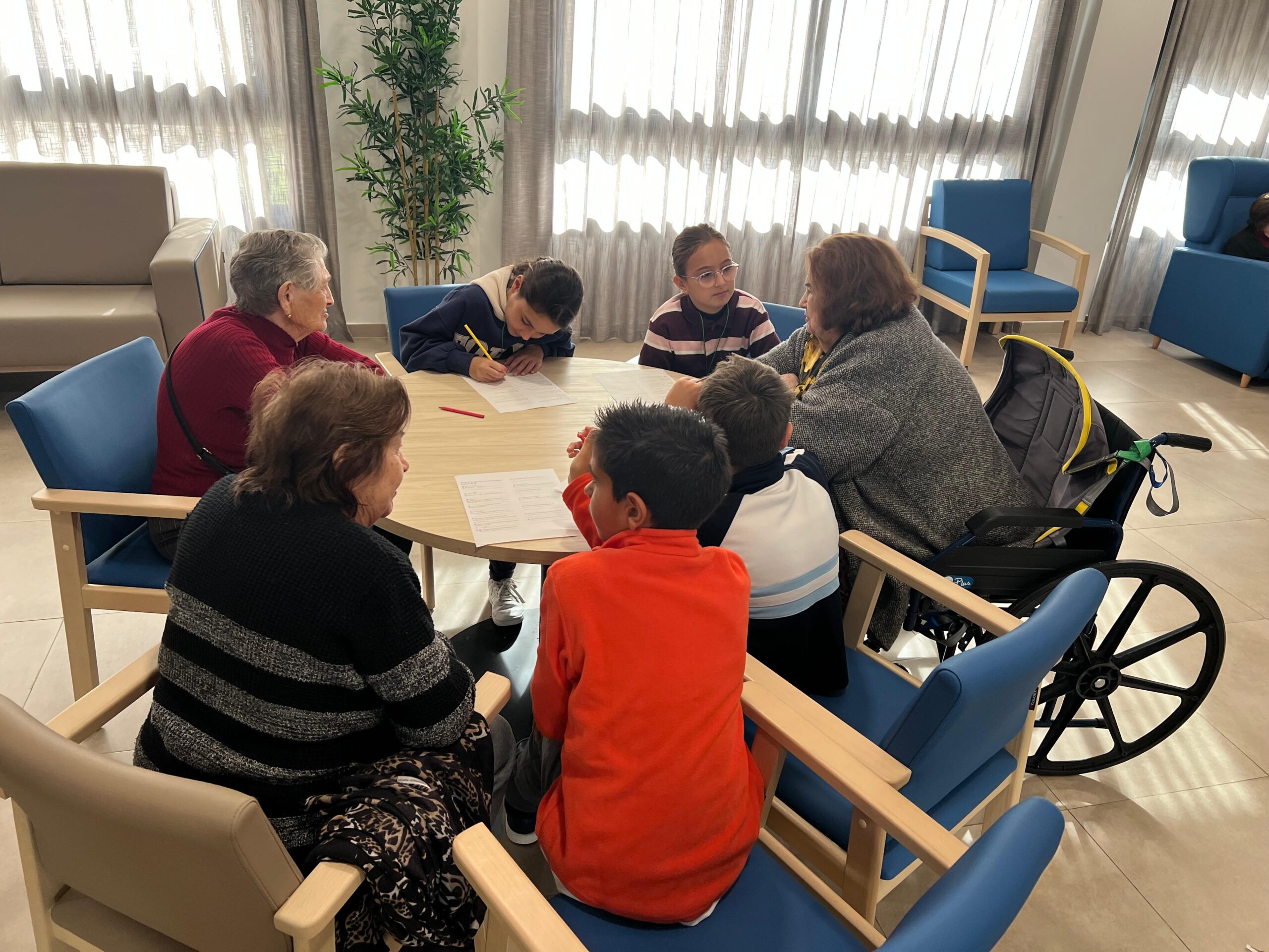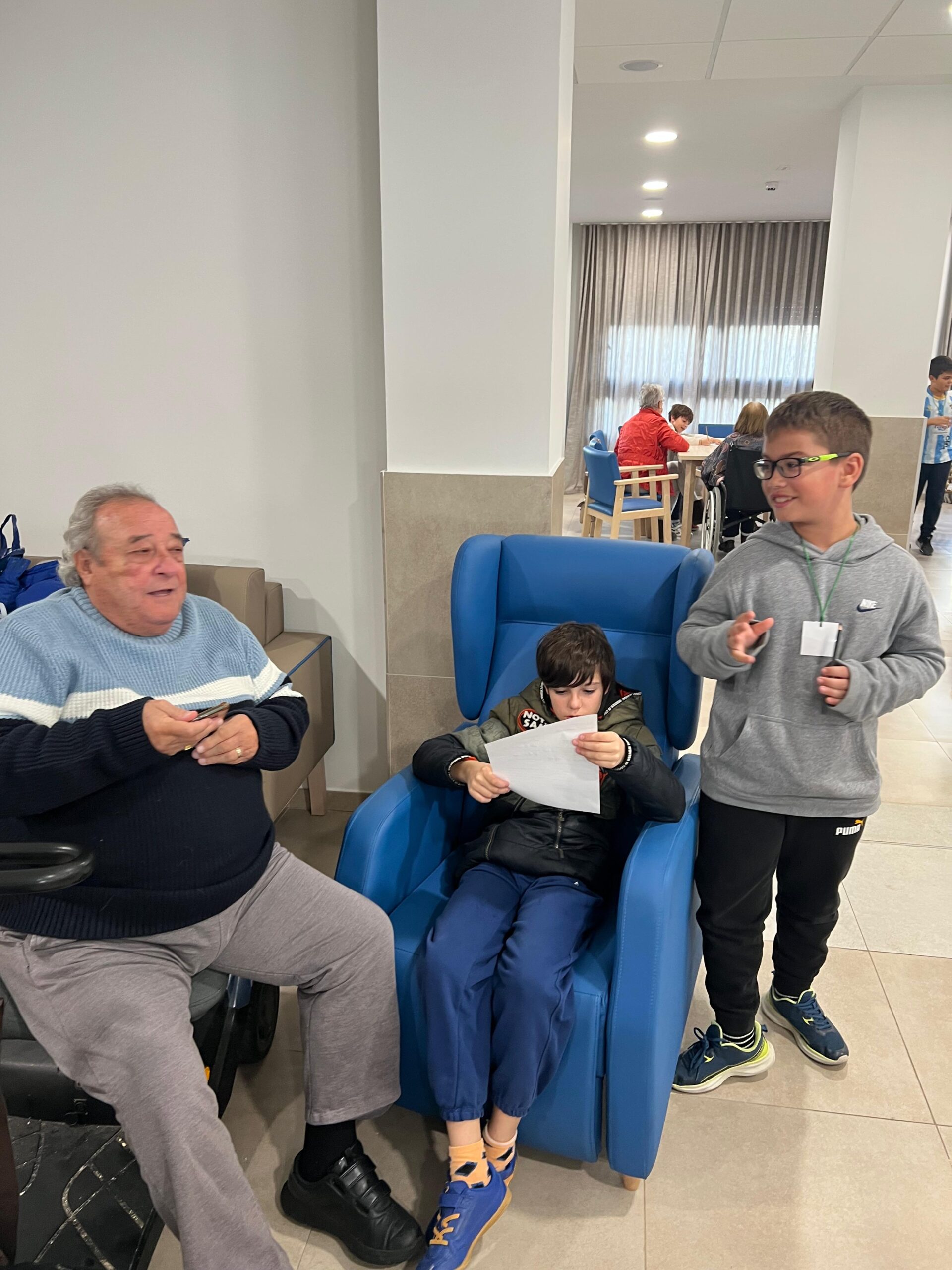 Hoy el alumnado ayudante del Centro ha visitado a los mayores de la Residencia REIFS de Tomares para intercambiar datos y así poder establecer correspondencia. Además le han explicado sus funciones como alumnado ayudante, le han cantado un Villancico y han bailado.