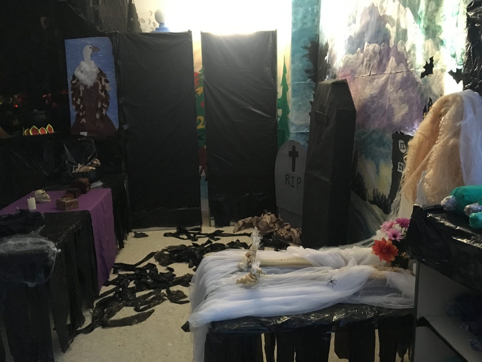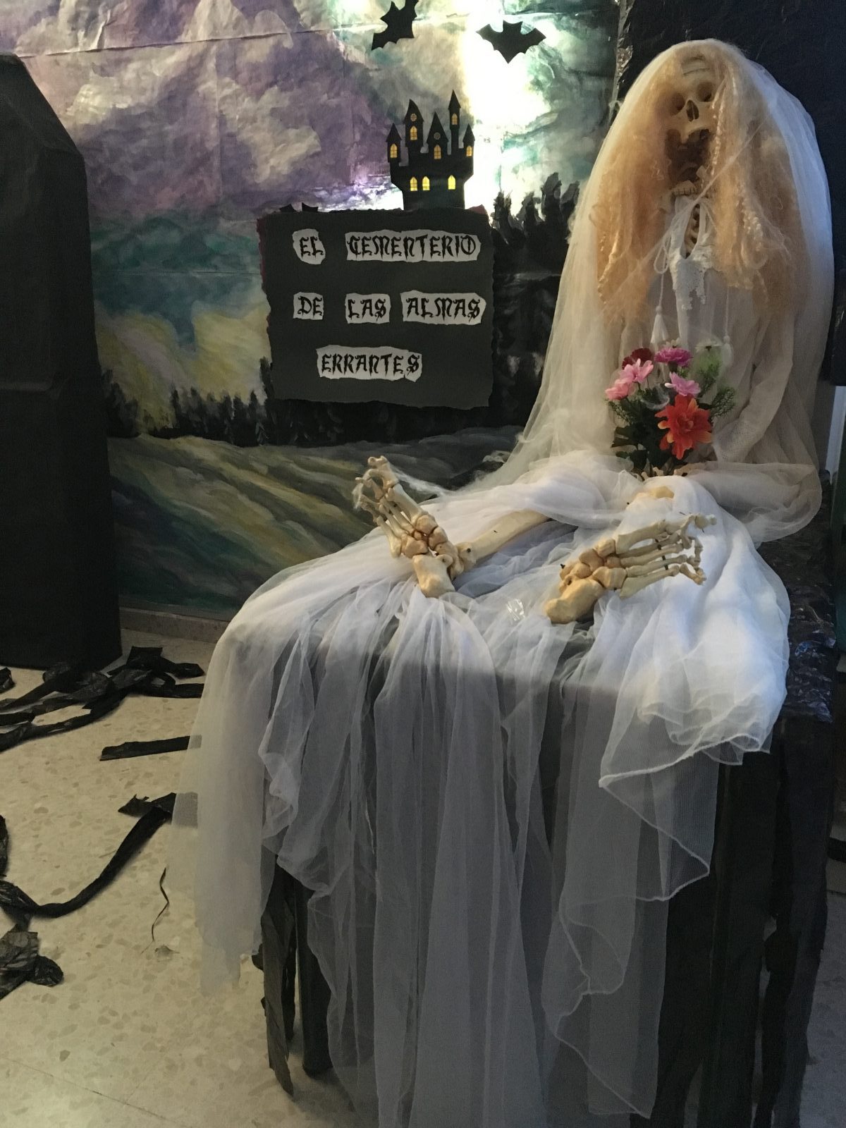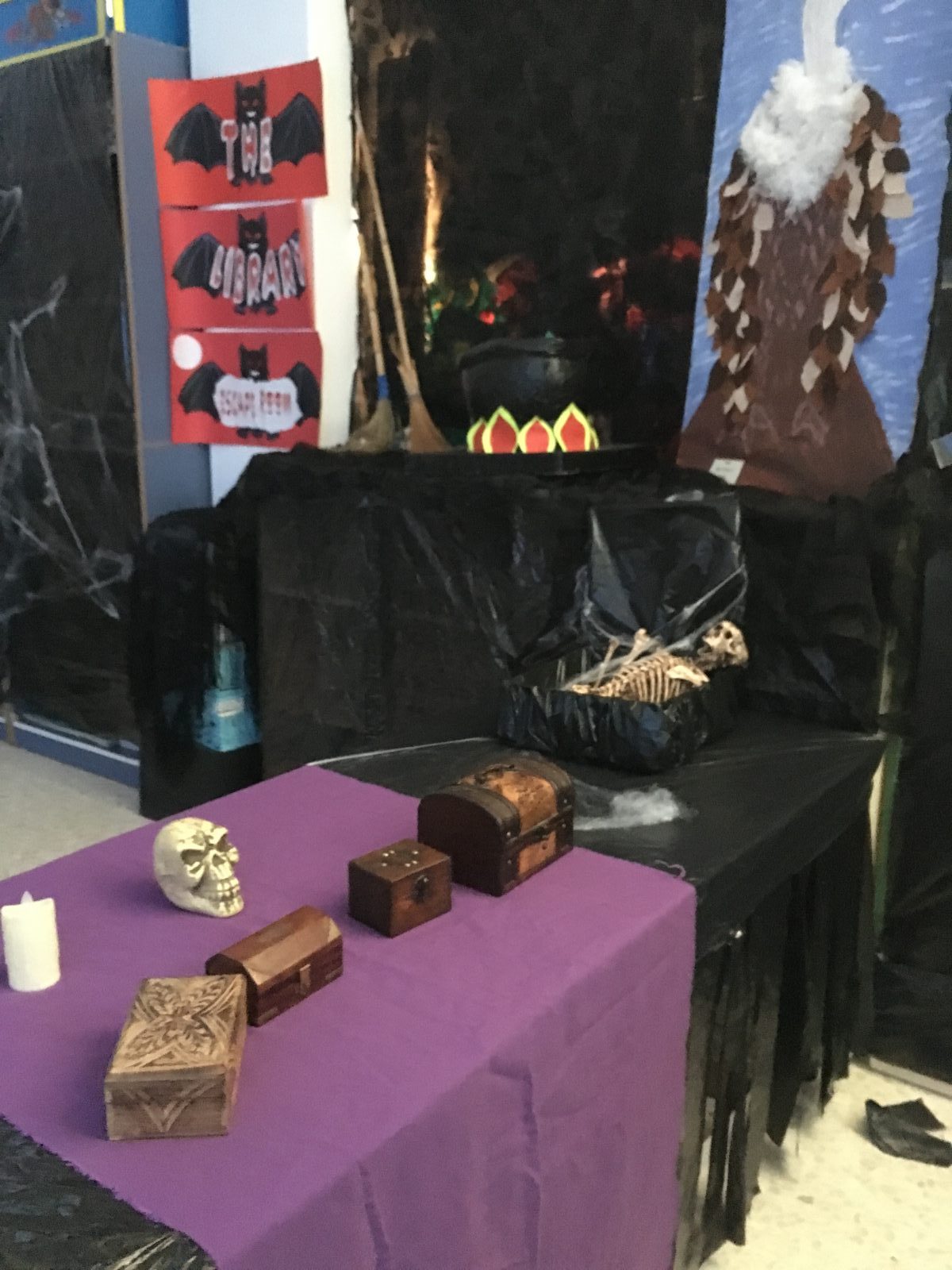 Cada año el equipo de Biblioteca se supera en el desarrollo de actividades de Halloween. No sólo ya por el concurso de relatos terroríficos, sino también por la organización y desarrollo de un Scape-Room en la Biblioteca, donde el alumnado debe trabajar en equipo, utilizar su ingenio y razonamiento para poder superar pistas y conseguir el objetivo del equipo. Ha sido una actividad muy divertida para el alumnado y muy motivadora. Aquí os dejamos algunas imágenes de como el equipo de Biblioteca lo ha diseñado.
