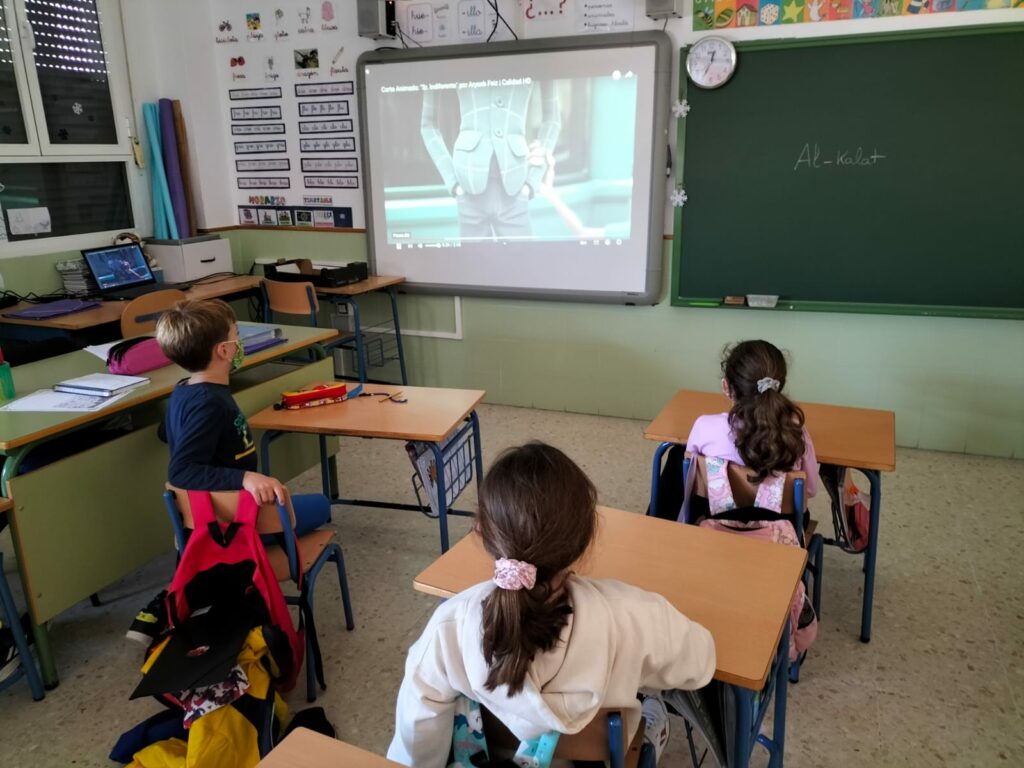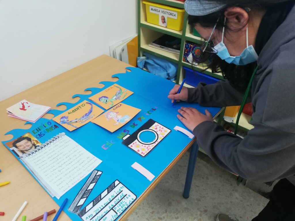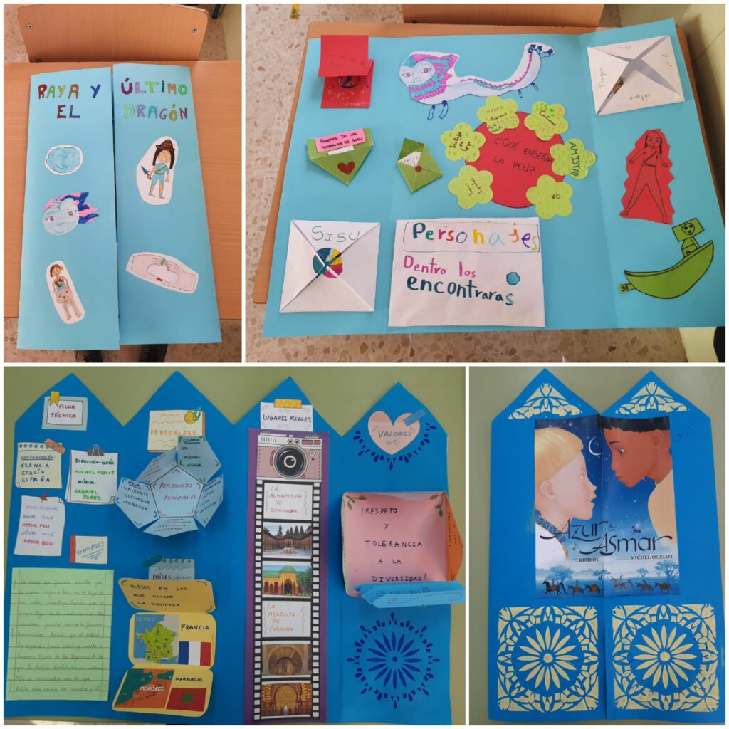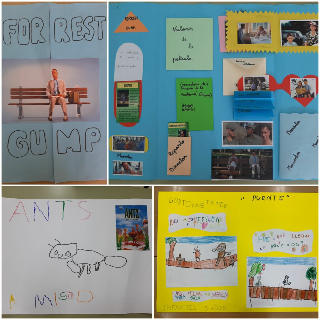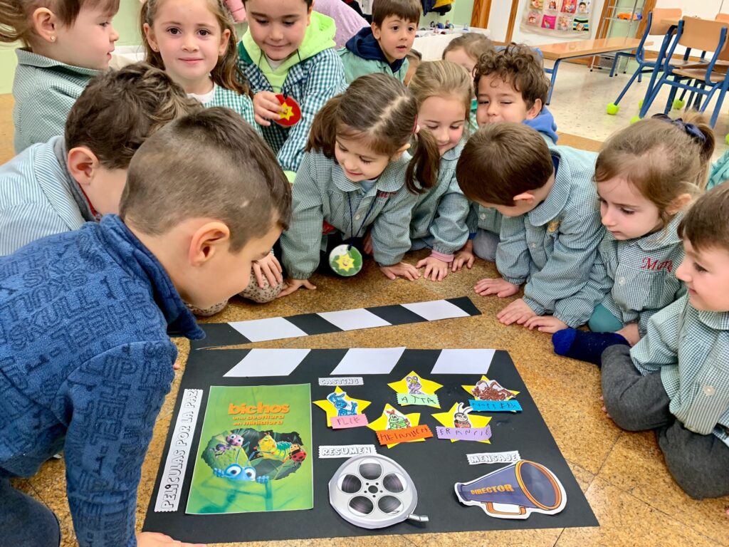 Como parte de nuestro ABP “Sueños de cine” y con motivo de la celebración del día de la Paz y la no violencia, el alumnado ha visualizado en clase películas/cortos cuyo valor central es la paz. Posteriormente, han elaborado lapbooks y murales en los que han incluido los valores que promueve dicha película, sus personajes, escenarios, etc. Os presentamos parte del proceso y el producto final, que queda expuesto en una de las escaleras de nuestro cole. ¡Nuestro cole es de cine!