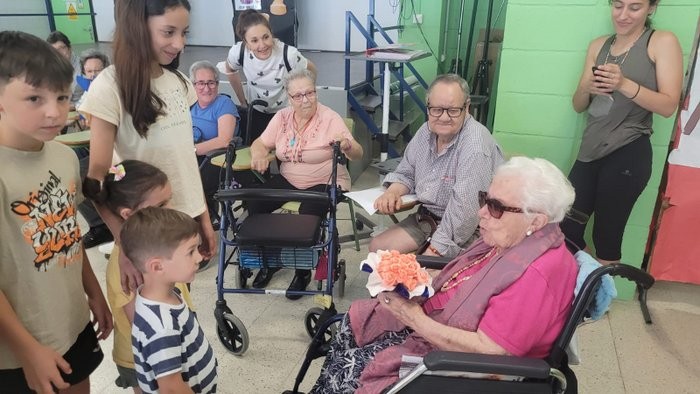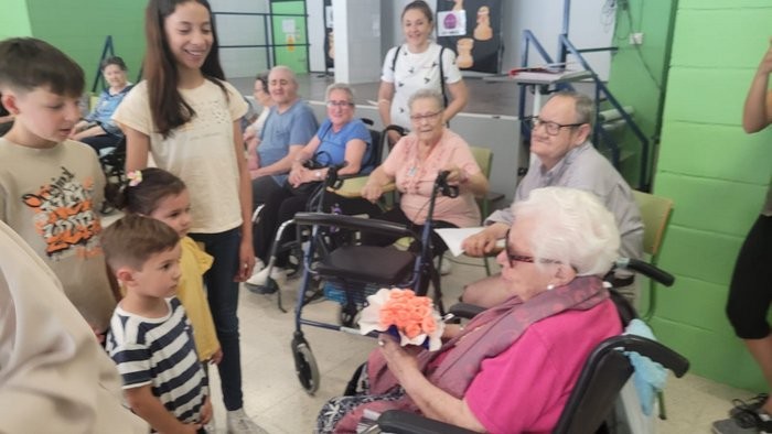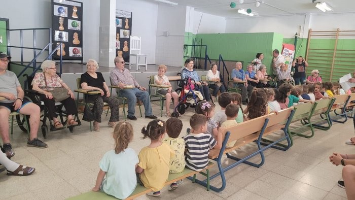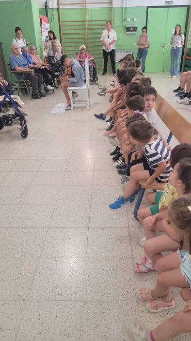 Deciros que en la mañana de hoy, 11 de mayo, el alumnado de 6ºC y de 3 años, ha sido nombrado embajador para recibir de la mejor manera posible, con cariño, simpatía y generosidad, a los usuarios/as de la residencia de mayores del barrio. Se han ido prendados por la estupenda acogida que han tenido por parte del centro y vuestros/as hijos/as en particular, con José Carlos a la guitarra a la cabeza pero también con el acompañamiento y diálogo establecido con todos/as ellos/as en el Salón de Usos múltiples, en el que también se nos ha unido el alumnado de 3 años, haciendo las delicias de los abuelos/as presentes. Ha sido un estupendo momento de intercambio vivencial generacional en gran parte por la buena predisposición de las personas visitantes (incluidos los monitores/as, la enfermera de referencia) y las interesantes cuestiones que el alumnado ha preguntado a tan sabias, por ancianas, personas. Ha habido lugar para anécdotas, humor, cante, recuerdos impagables…Por resumirlo en una palabra: memorable. Sus caras a la partida lo decían todo.