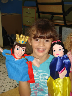 La seño también ha traído marionetas y un teatro chiquitito