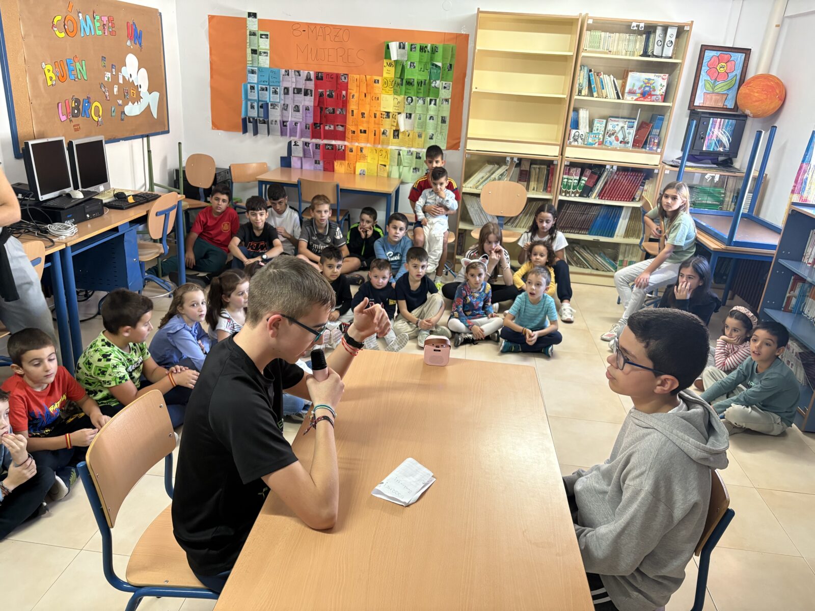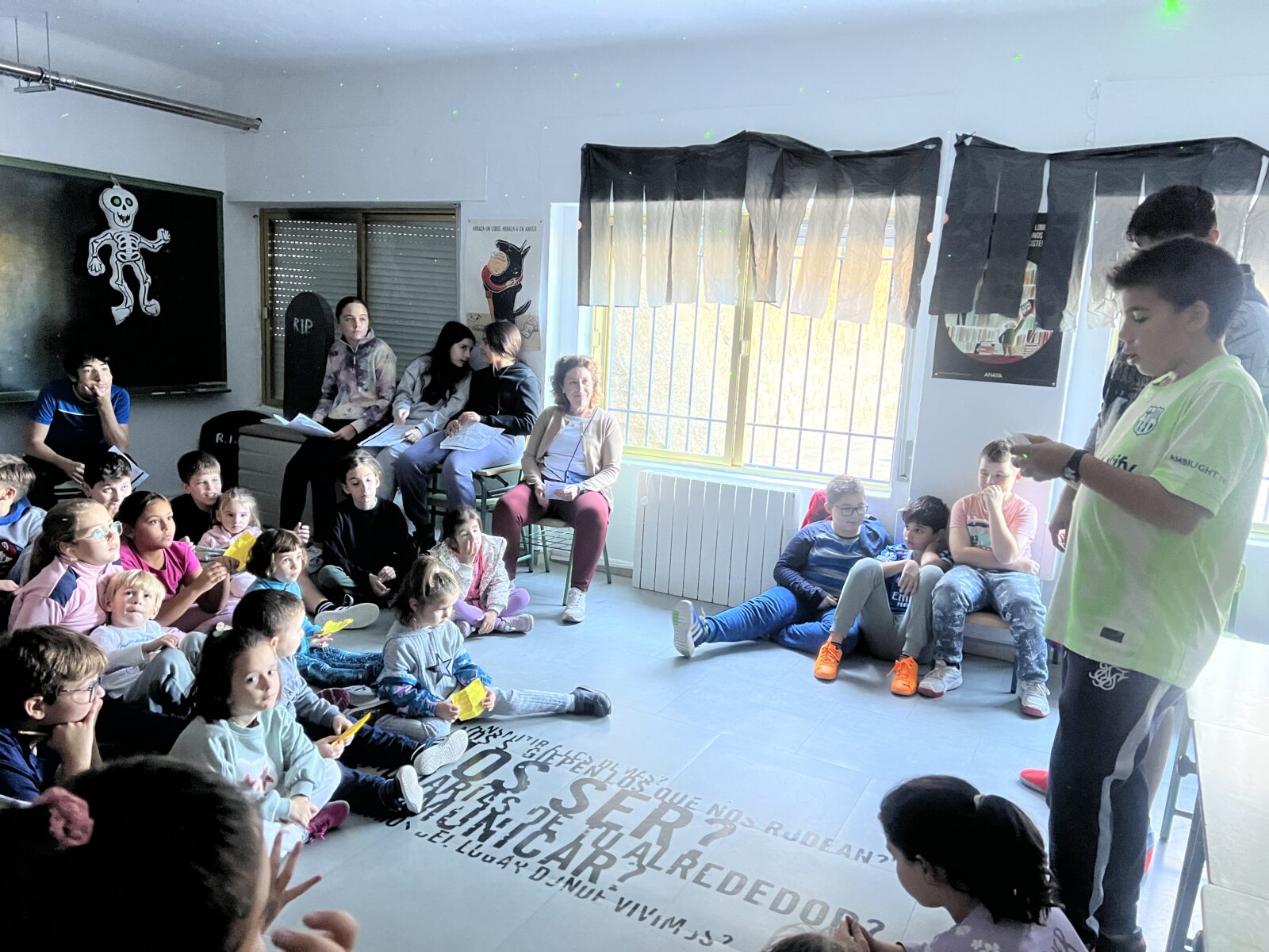 Para la celebración de este día, realizamos diferentes actividades muy divertidas que encantaron a nuestro alumnado. Primero comenzamos con una gymkana. Tenían que ir adivinando de qué cuento se trataba en cada pista y además, realizar una prueba para poder conseguir un número. Con todas las pistas y pruebas realizadas, tuvieron que componer el código correcto compuesto por 7 números. Con ese código pudieron acceder a la biblioteca del colegio. Una vez allí, el alumnado de secundaria teatralizó un cuento llamado “Un libro para una estrella”. Tras finalizar, se realizó una pequeña tertulia.