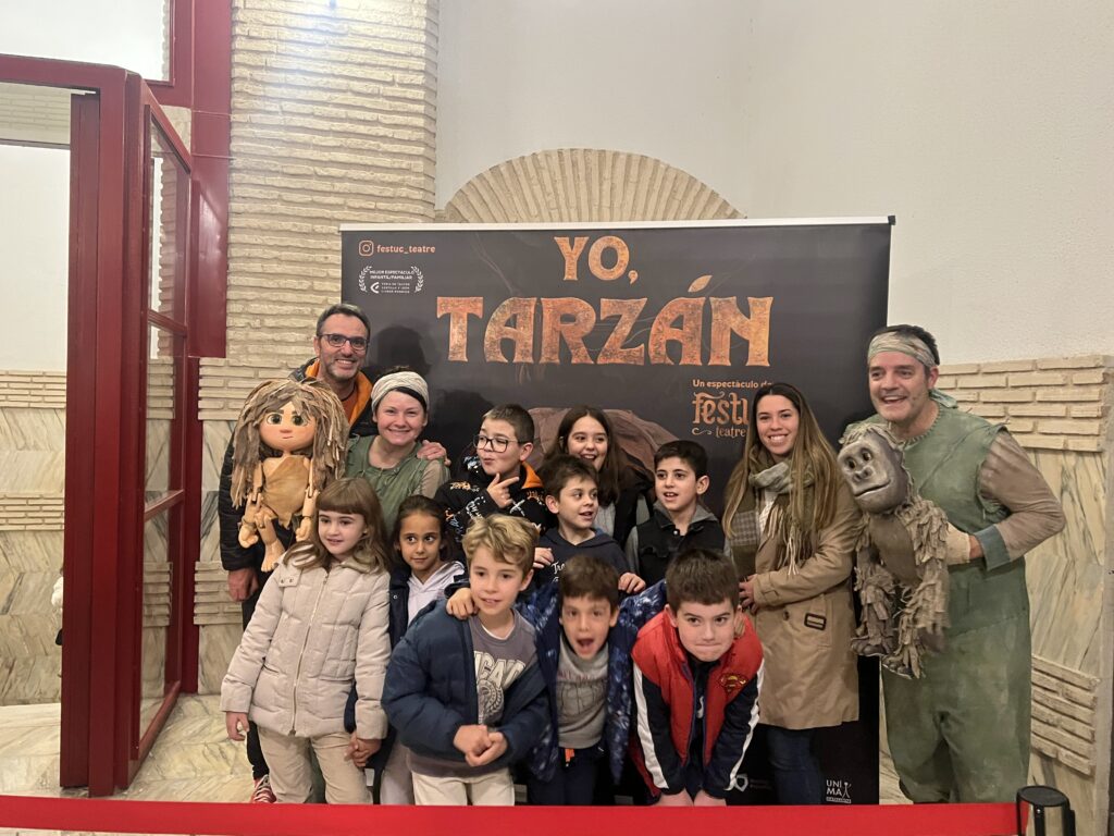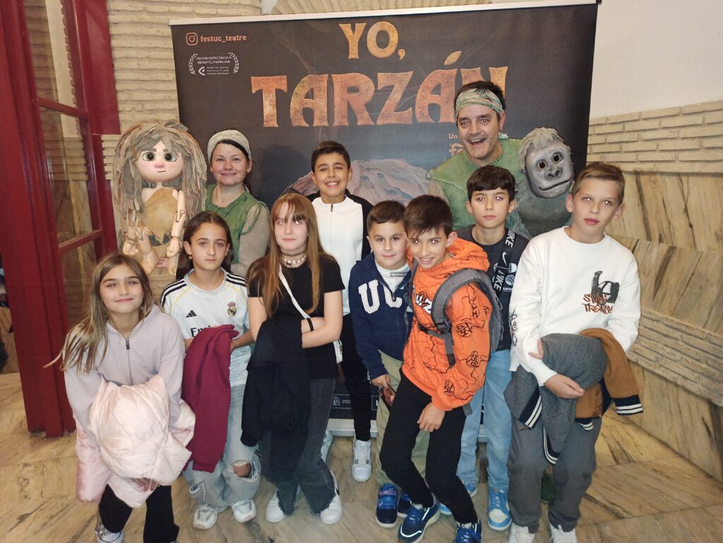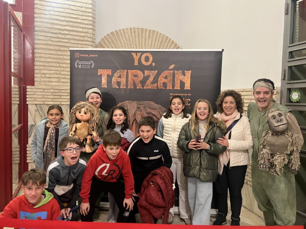 La obra que vimos se llamaba “Yo, Tarzán”, una adaptación del famoso cuento de Tarzán, pero hecha de una forma muy original. Solo había dos actores, pero parecían muchos más porque usaban marionetas y cambiaban de personajes todo el rato. Nos sorprendió cómo podían moverlas tan bien y hacer voces diferentes. ¡Parecía que los muñecos tenían vida propia!