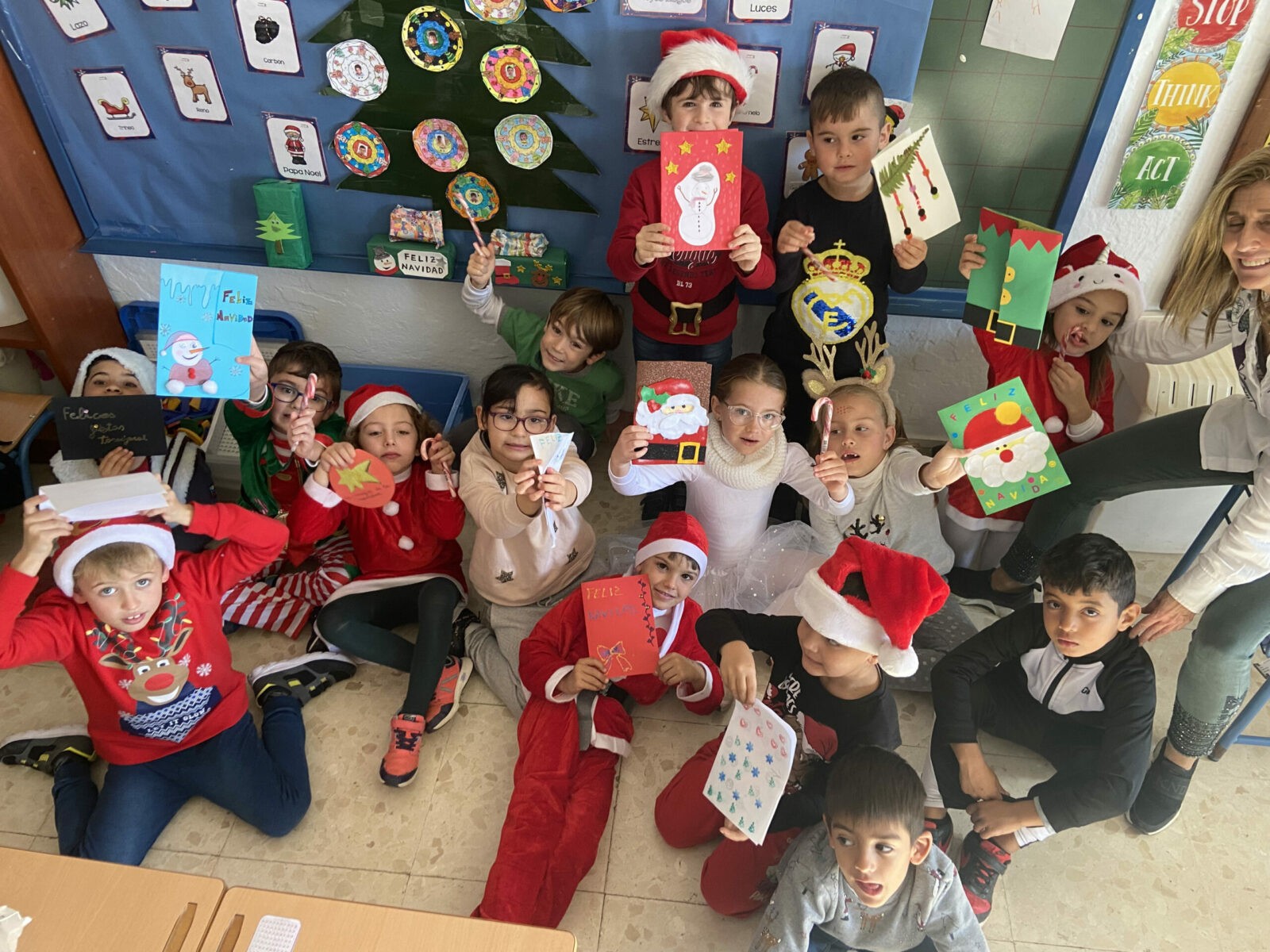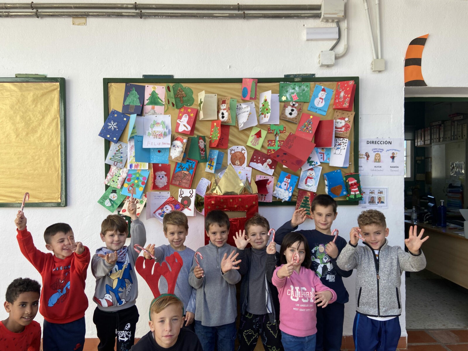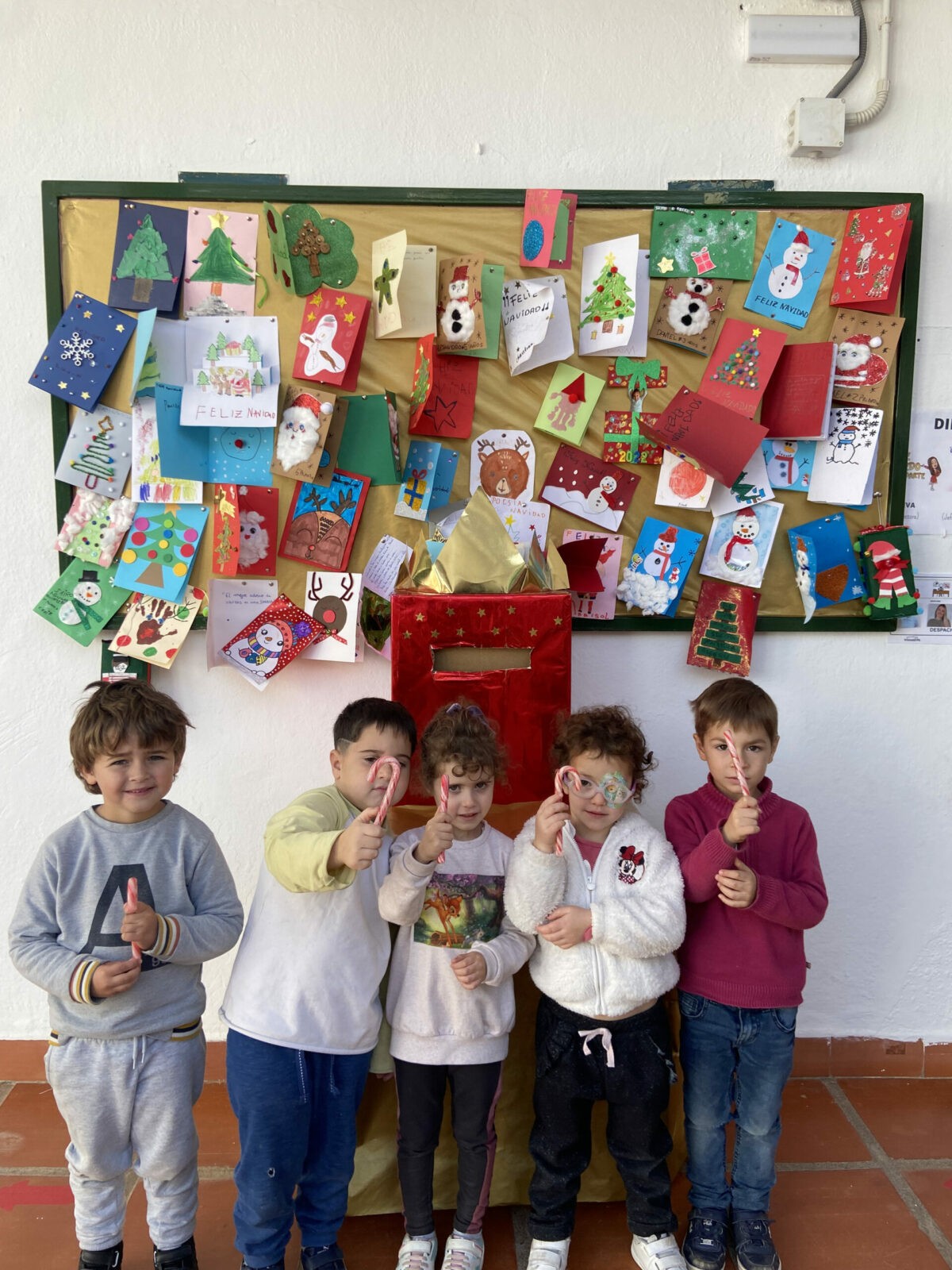 Primer ciclo e infantil: Al haber tantas postales tan bonitas, fue imposible elegir una sola; por lo que Papa Noel trajo un ayudante y les dio a cambio de su postal, un bastón de caramelo a cada uno de los participantes. (Texto de Carmen Muñoz)