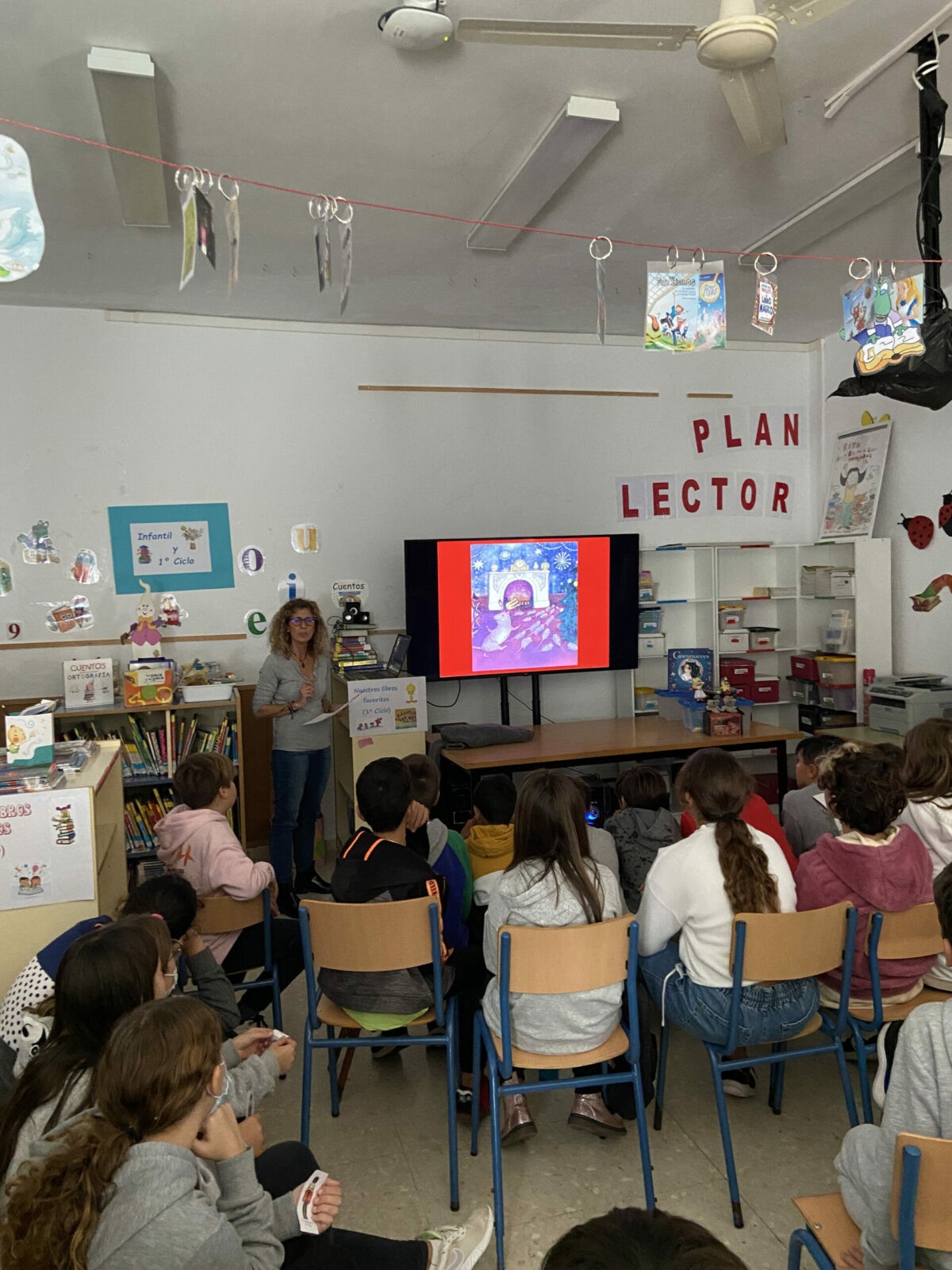 Para infantil se ha representado el cuento con marionetas y para primaria la maestra Victoria les ha contado el cuento mientras el alumnado veía las preciosas ilustraciones amenizadas con la música del Cascanueces de Tchaikovsky.