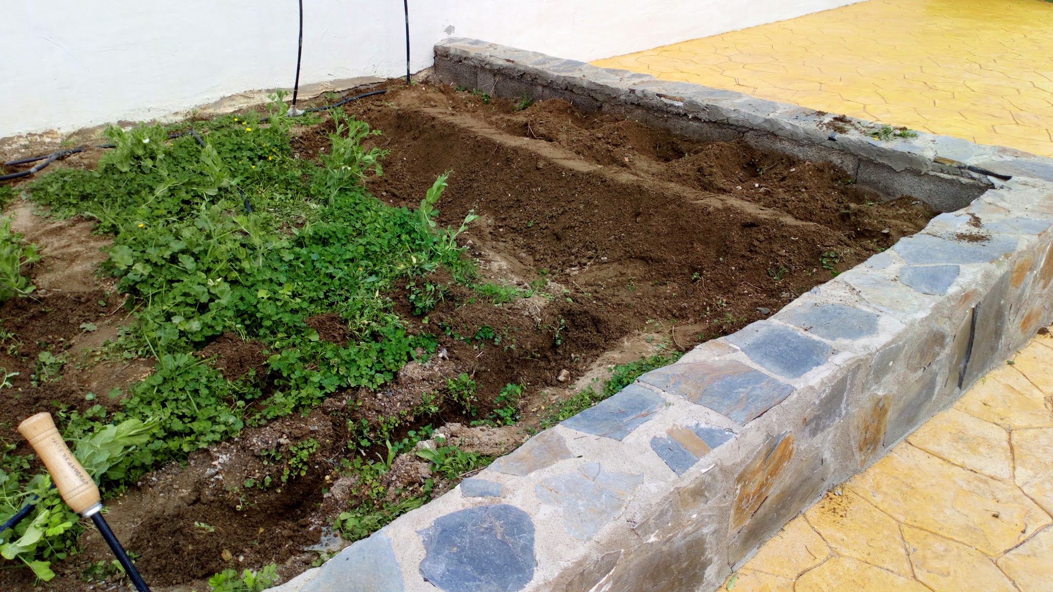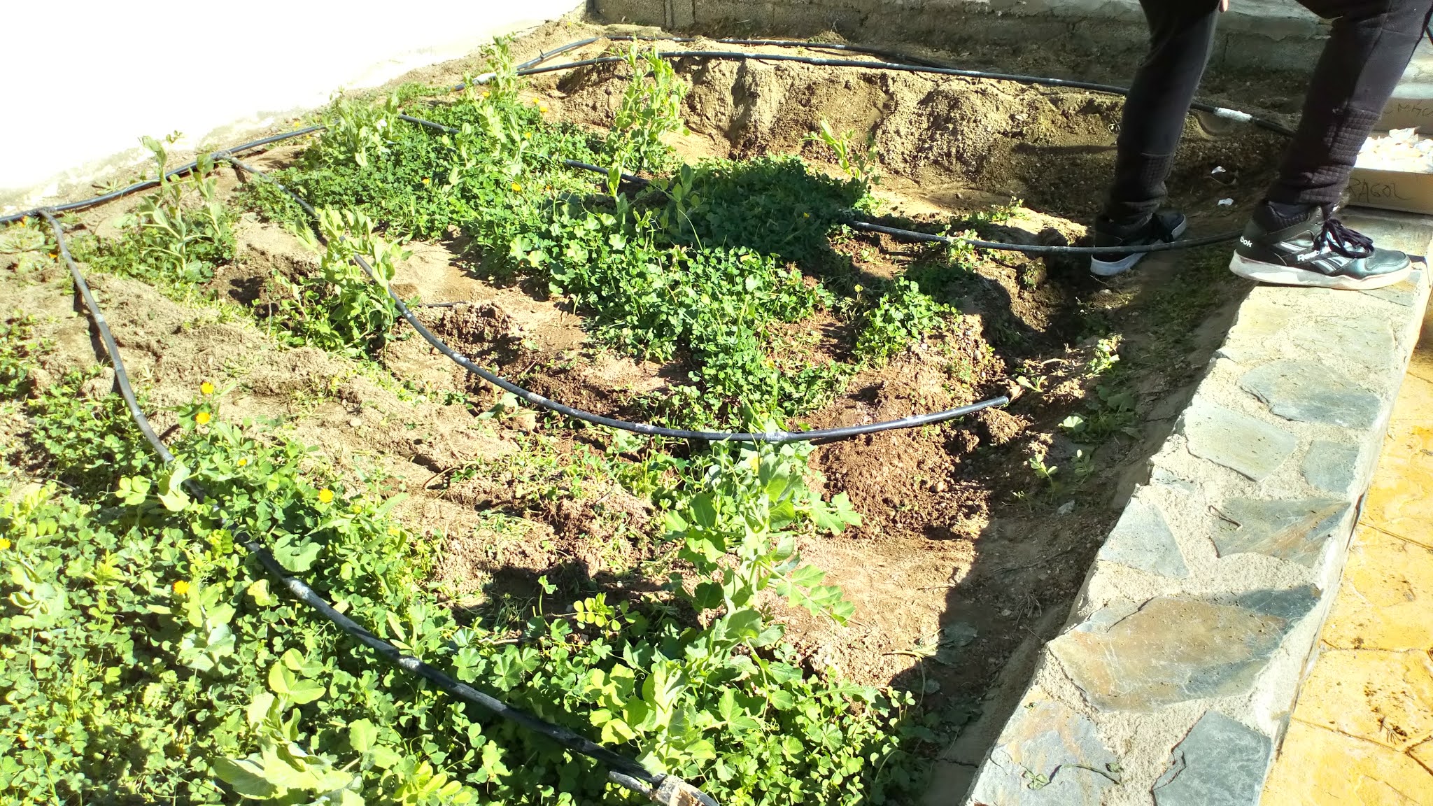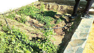 También, antes de Navidad hicimos unas regatas para aprovechar más el agua que se escapa del riego por goteo. Las probamos un poco y parece que han dado resultado. Las seguiremos probando conforme vayamos regando. Ya os contaremos.