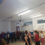 Después de los talleres todo el Centro se ha reunido en el patio de Primaria y el alumnado de quinto y sexto ha realizado una interpretación musical de «La Tarara», cantándola todo el Centro a la vez.