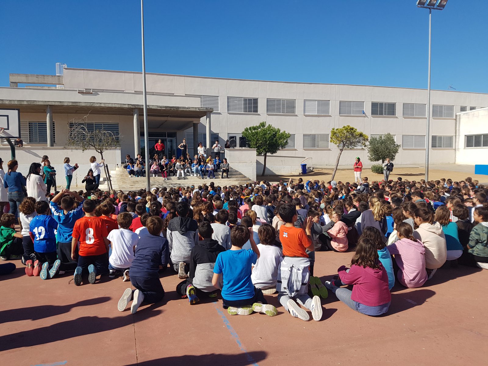 Después de los talleres todo el Centro se ha reunido en el patio de Primaria y el alumnado de quinto y sexto ha realizado una interpretación musical de «La Tarara», cantándola todo el Centro a la vez.