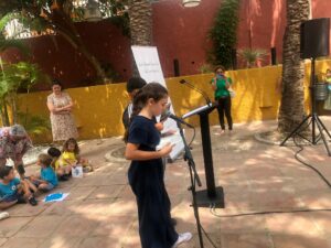 El acto que durante el día de hoy ha tenido lugar en la Plaza de Marruecos ha consistido en la presentación del magnífico trabajo que durante el presente curso escolar han desarrollado todos los integrantes del grupo de cooperación bibliotecaria Marea Lectora, los centros educativos y la biblioteca municipal de Almuñécar:CEIP La Santa Cruz, CEIP San MIguel, CEIP Arcos de Torrecuevas, CEIP Virgen de la Antigua, CEIP Rio Verde, CEIP La Noria, CEIP Gaviotas, CPR Valle Verde, IES Puerta del Mar, IES Antigua Sexi, IES Al-Andaluz, IES Villanueva del Mar, Almuñécar International Scholl y CEPEr Mare Nostrum.