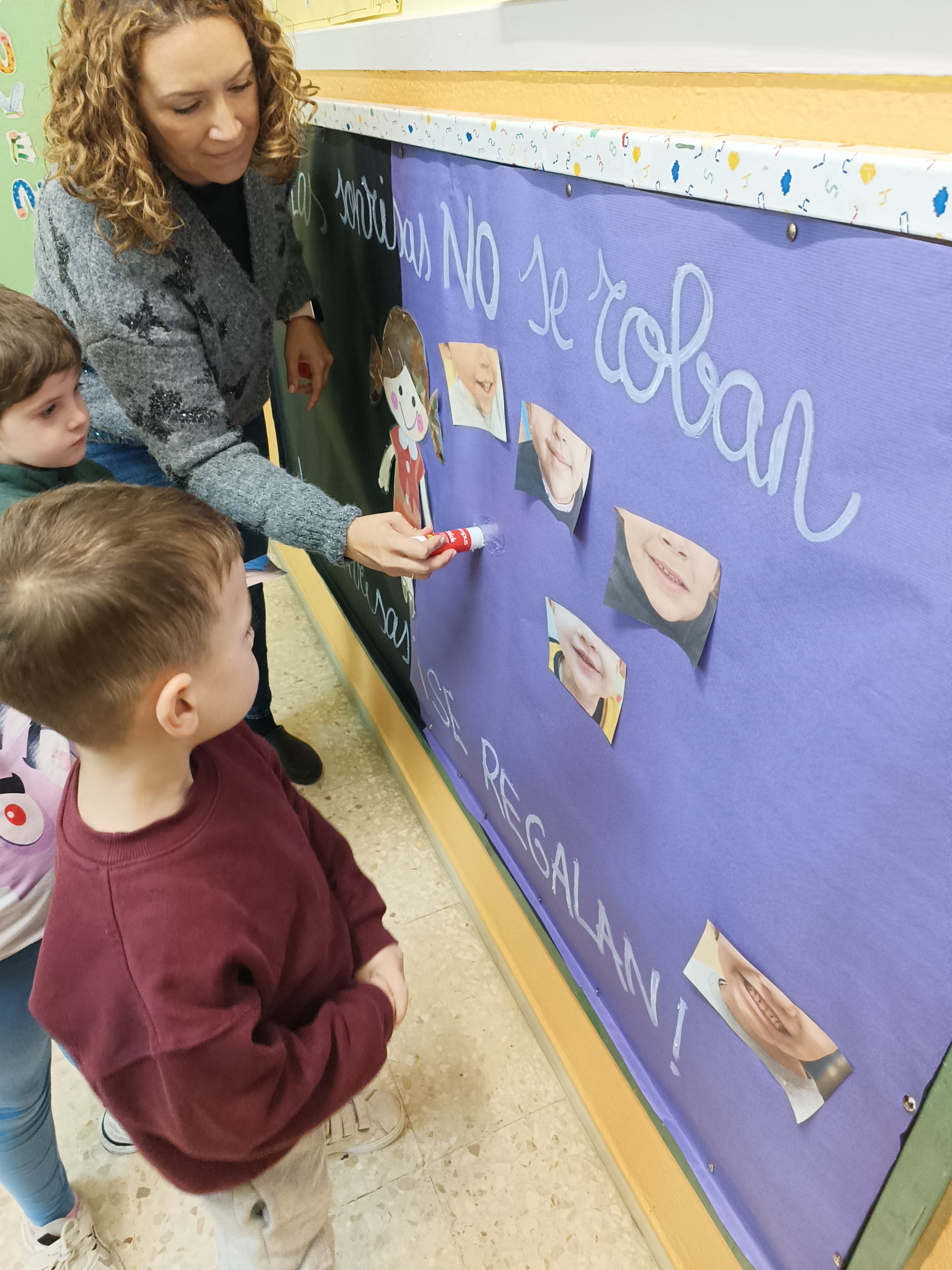 Hoy hemos celebrado el Día Internacional de la Eliminación de la Violencia contra la Mujer contando el cuento de «Pepuka y el monstruo que se llevó sus sonrisa». Después hemos plasmado nuestra sonrisa en el mural de «Las sonrisas no se roban, las sonrisas se regalan» Ha sido un día muy emotivo y divertido.