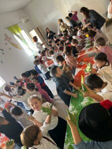 Para terminar la jornada han tenido una sesión de musico-terapia al son de la música flamenca. De este modo han trabajado el musicograma mostrado en un vídeo proyectado y que han vivenciado con pintura de manos.