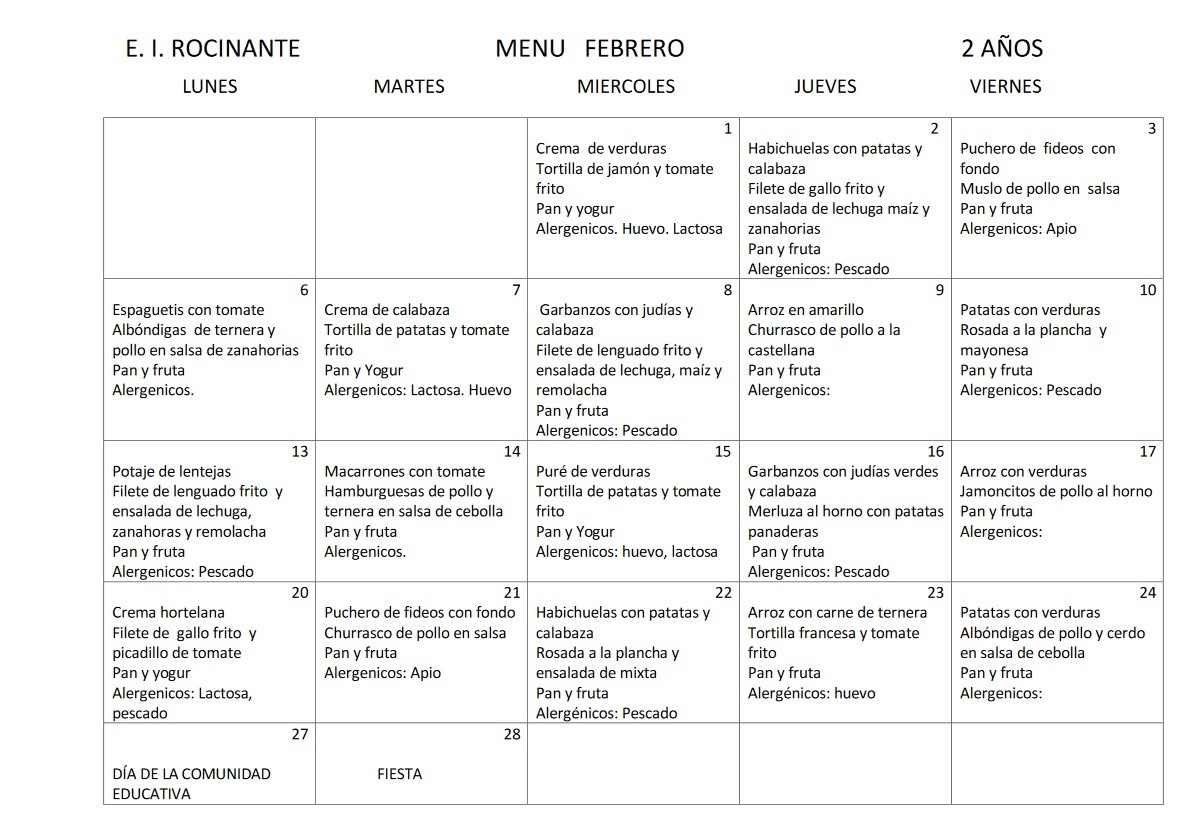 El menú mensual estará a disposición de las familias el primer día de cada mes, con información y recomendaciones nutricionales.