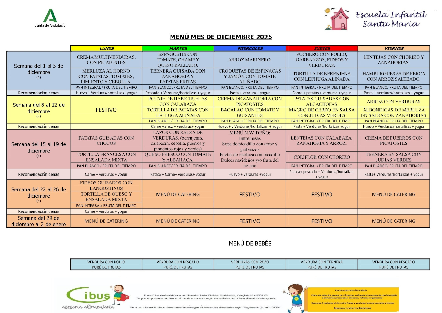 Con el servicio de comedor queremos promover una alimentación saludable, para lo que nuestro menú está supervisado por la empresa Cibus.