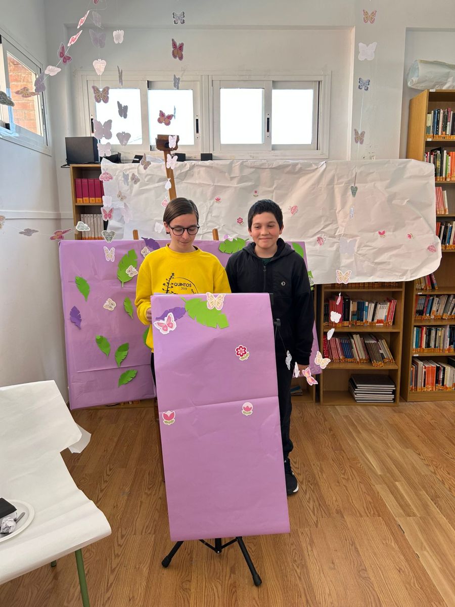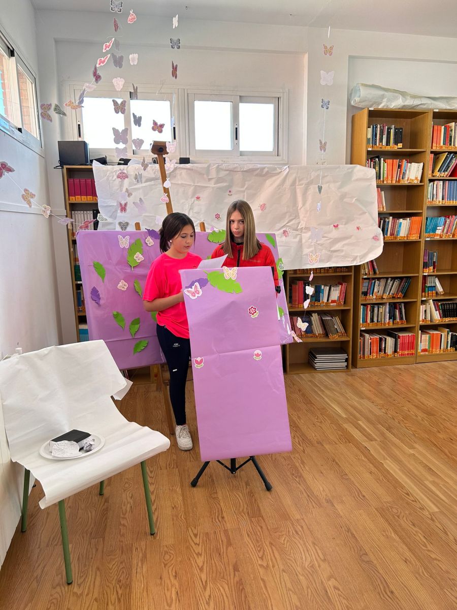 En la biblioteca del IES. Entresierras hemos preparado un decorado basado en la primavera, con flores y mariposas de vivos colores, para enaltecer la belleza de las palabras y de los corazones, capaces de albergarlas y emitirlas con magia sin medida.
