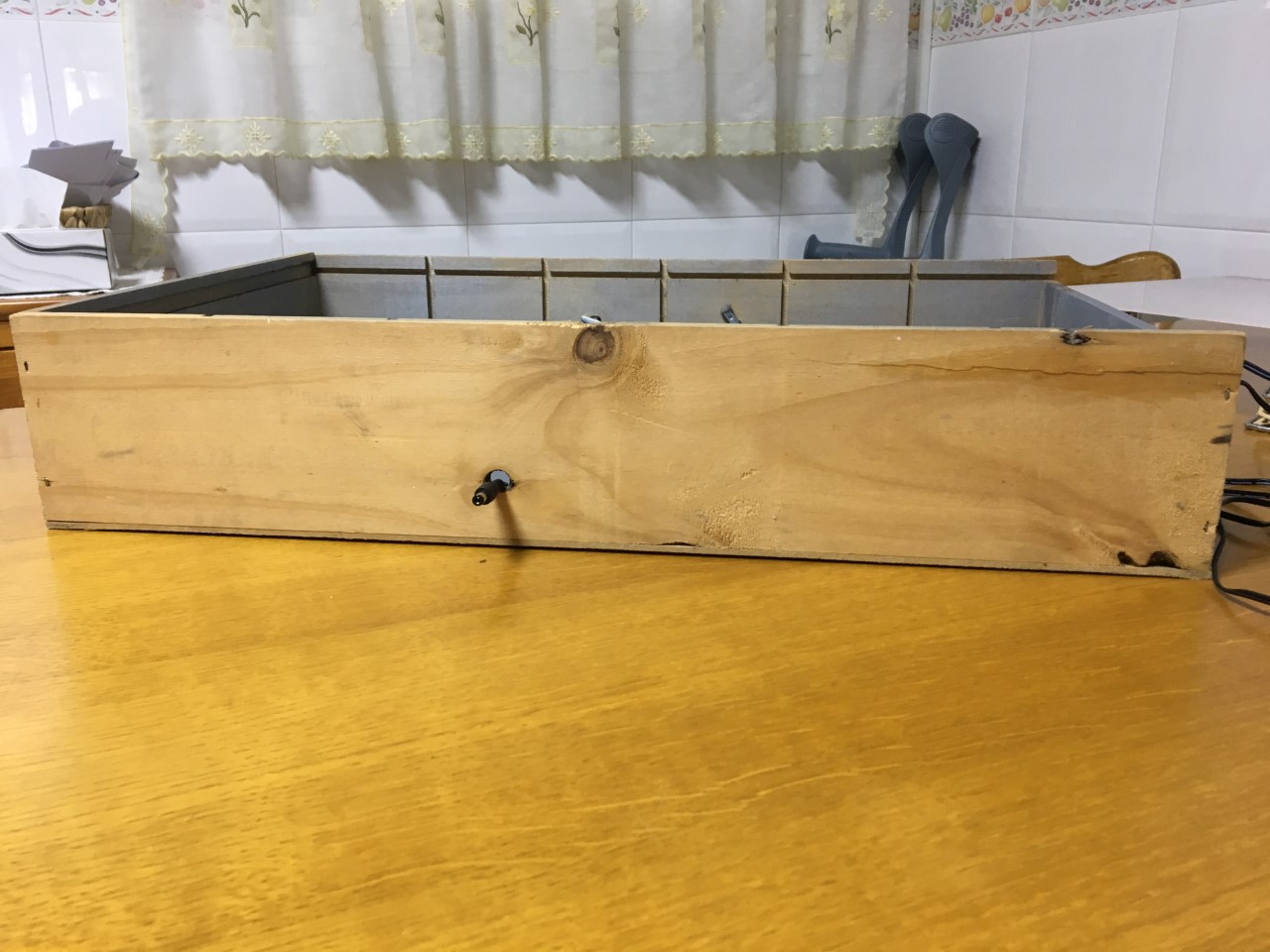 – Una caja de vinos de madera con tapa corredera (se pueden pedir en alguna tienda de vinos, normalmente te la regalan).