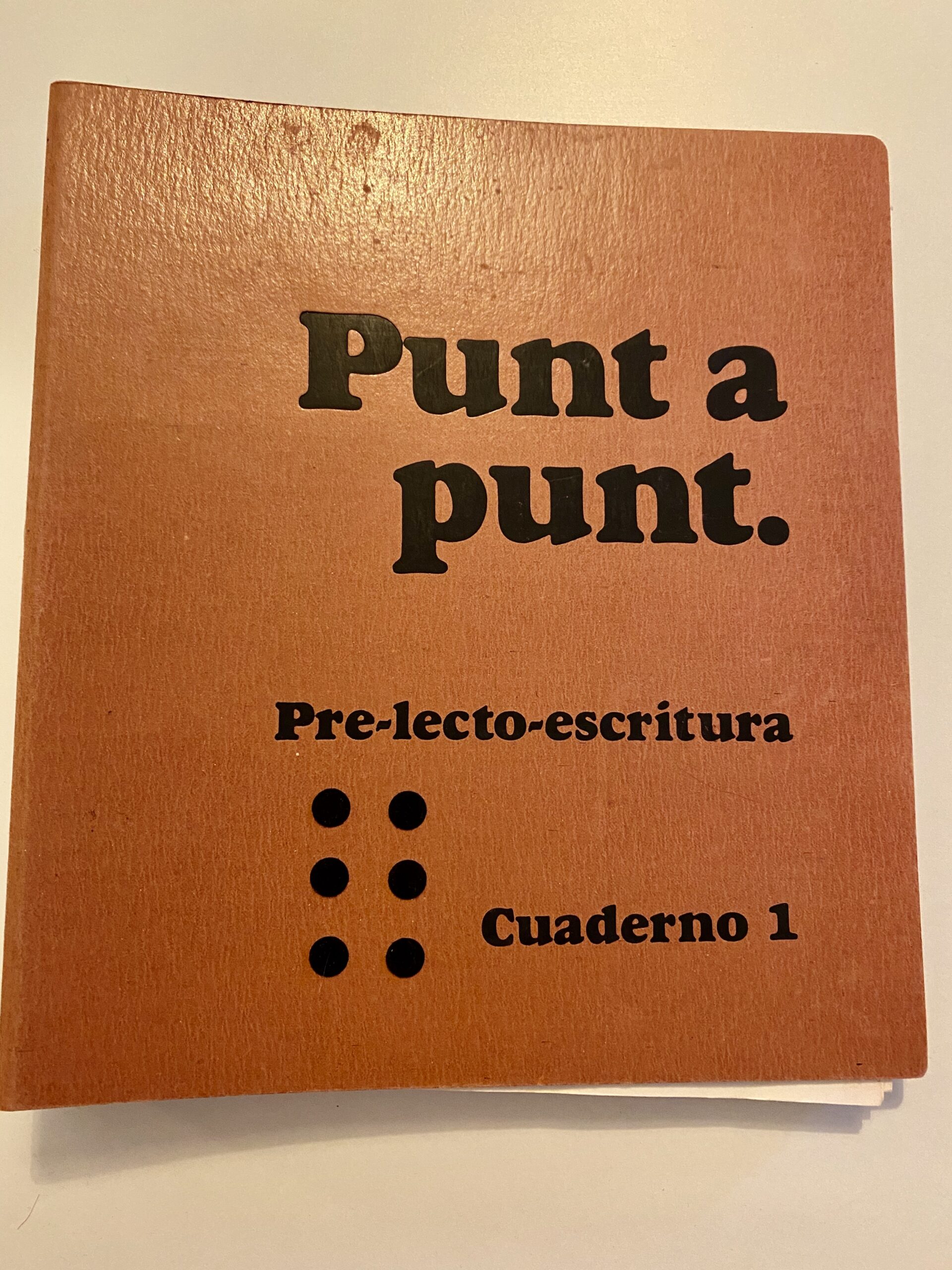 - El cuaderno 3 y 4 introduce el signo generador y se comienzan a distinguir las primeras combinaciones de puntos a la vez que se comienza con la preescritura. Se presentan todas las letras de menor a mayor dificultad y se van haciendo actividades de combinación de las mismas para construir sílabas, palabras y, por último, frases. El cajetín va disminuyendo progresivamente de tamaño hasta llegar al braille estándar.